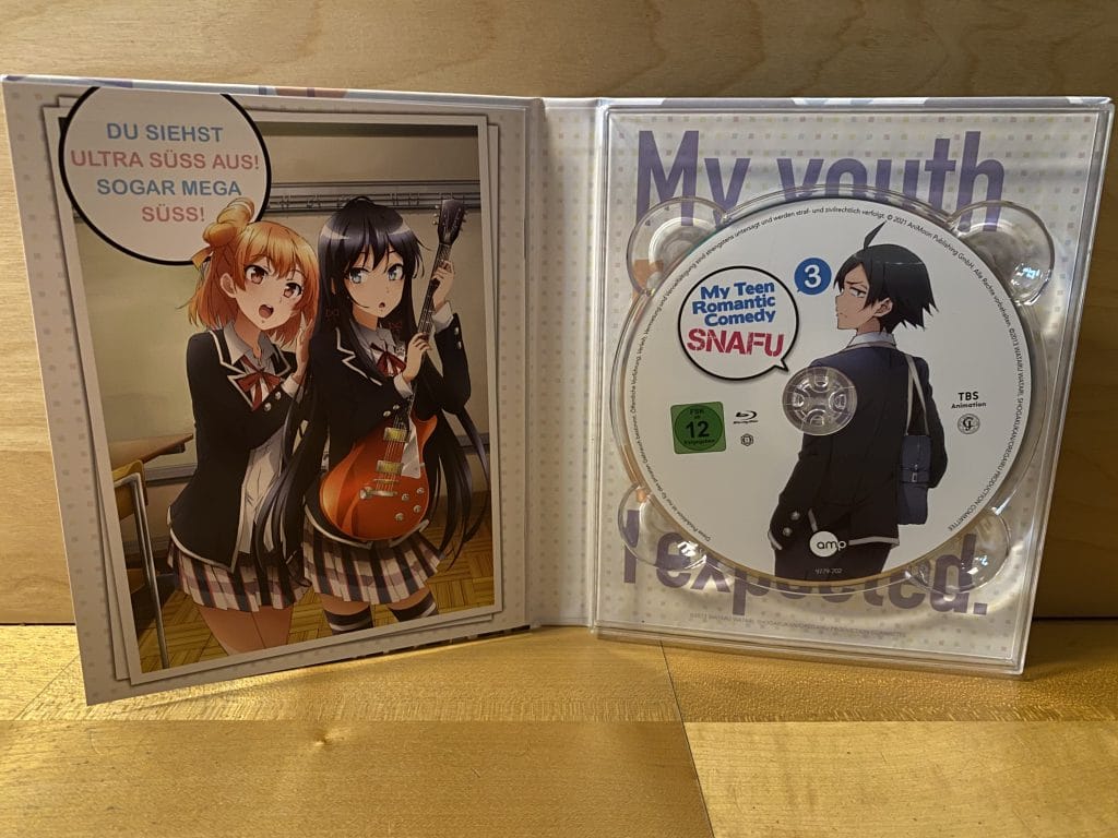 Wie ihr es bereits von unseren weiteren Rezensionen kennt, ist die physische Ausgestaltung des Produkts auch diesmal kein wertungsrelevanter Aspekt unserer Review. Stattdessen dient euch die nachfolgende Beschreibung als Überblick darüber, was euch im Falle eines Kaufs erwartet. Dabei beziehen sich alle Bilder und Informationen auf die limitierte Mediabook Edition des dritten Volumes von „My Teen Romantic Comedy SNAFU“ im Blu-Ray-Format.