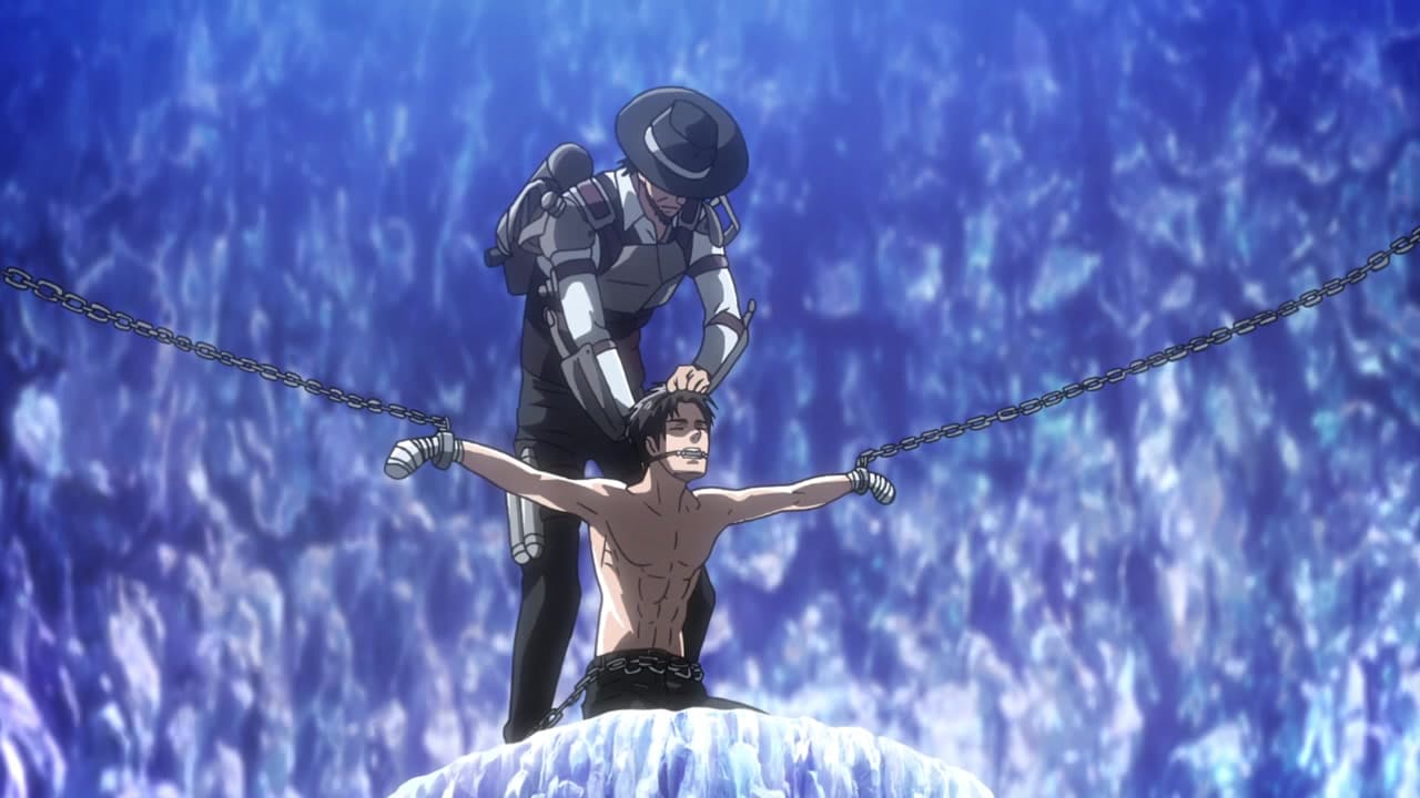 Eren ist immer noch mit Historia und ihrem Vater, Rod Reiss, in der geheimen Höhle gefangen. Er hat viel über die Vergangenheit erfahren. Darüber, dass die Kraft des Urtitanen immer in der Familie Reiss weitervererbt wurde, mitsamt den Erinnerungen des ersten Königs. Über Generationen hinweg wurde das Mitglied mit der Kraft dieses Titanen, der alle anderen Titanen kontrollieren kann, von seinem Erben oder seiner Erbin verspeist und die Macht ging auf ihn über. Doch Erens Vater hatte diesen Kreislauf einst durchbrochen und gab diese Kraft später an Eren weiter, indem er ihn in einen Titanen verwandelte und sich von ihm essen ließ. Da jedoch nur Mitglieder der Königsfamilie die Kraft des Titanen vollständig entfalten können, soll Historia nun Eren essen und danach die Titanen besiegen. Nach einigem Hin und Her weigert sie sich jedoch, woraufhin sich ihr Vater in einen riesigen Titanen verwandelt und beginnt die Höhle zu zerstören. Der Aufklärungstrupp ist derweil in der Zeremonienkammer der Höhle angekommen, um Eren und Historia zu retten. Mithilfe von Erens Titanenkraft überleben sie knapp und können aus der einstürzenden Höhle entkommen. Draußen müssen sie mit ansehen, wie der unkontrollierbare Riesentitan von Rod Reiss sich in Richtung einer Stadt bewegt.
