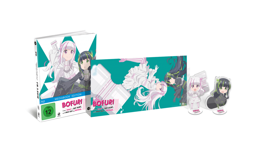 Nach einer kleinen Verschiebung wird das finale dritte Volume von „BOFURI“ voraussichtlich am 11. Juni 2021 im Handel erscheinen. Dabei dürfen sich Käufer wieder auf ein Mediabook freuen, das diesmal die Folgen 9 bis 12 mit deutscher Synchronisation sowie japanischer Original-Tonspur mit deutschen Untertiteln enthält. Als Extra gibt es gleich zwei Chibi-Acrylfiguren der Charaktere Mai und Yui, die schließlich auch in der Serie im Doppelpack daherkommen. Außerdem gibt es für die ersten 500 Shop-Vorbesteller auf der Webseite von AniMoon Publishing ein exklusives Maxiposter gratis dazu.