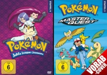 Demnach plant man einen Release der vierten sowie der fünften „Pokémon“-Staffel auf DVD, wobei die Erstauflagen in einer Softbox mit O-Card daherkommen sollen. Den Anfang macht dabei „Pokémon – Staffel 4: Die Johto Liga Champions“, die insgesamt 52 Episoden umfasst, am 24. September 2021. Etwa zwei Monate später, nämlich am 26. November 2021, folgt dann die 64-teilige fünfte Staffel „Pokémon – Staffel 5: Master Quest“. Eine Vorbestellung ist sogar schon möglich.