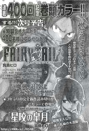 Doch damit nicht genug nochmals eine Woche später erscheint das 400. Kapitel von Fairy Tail und dies zu Feiern wird das Kapitel eine farbige Seite haben.