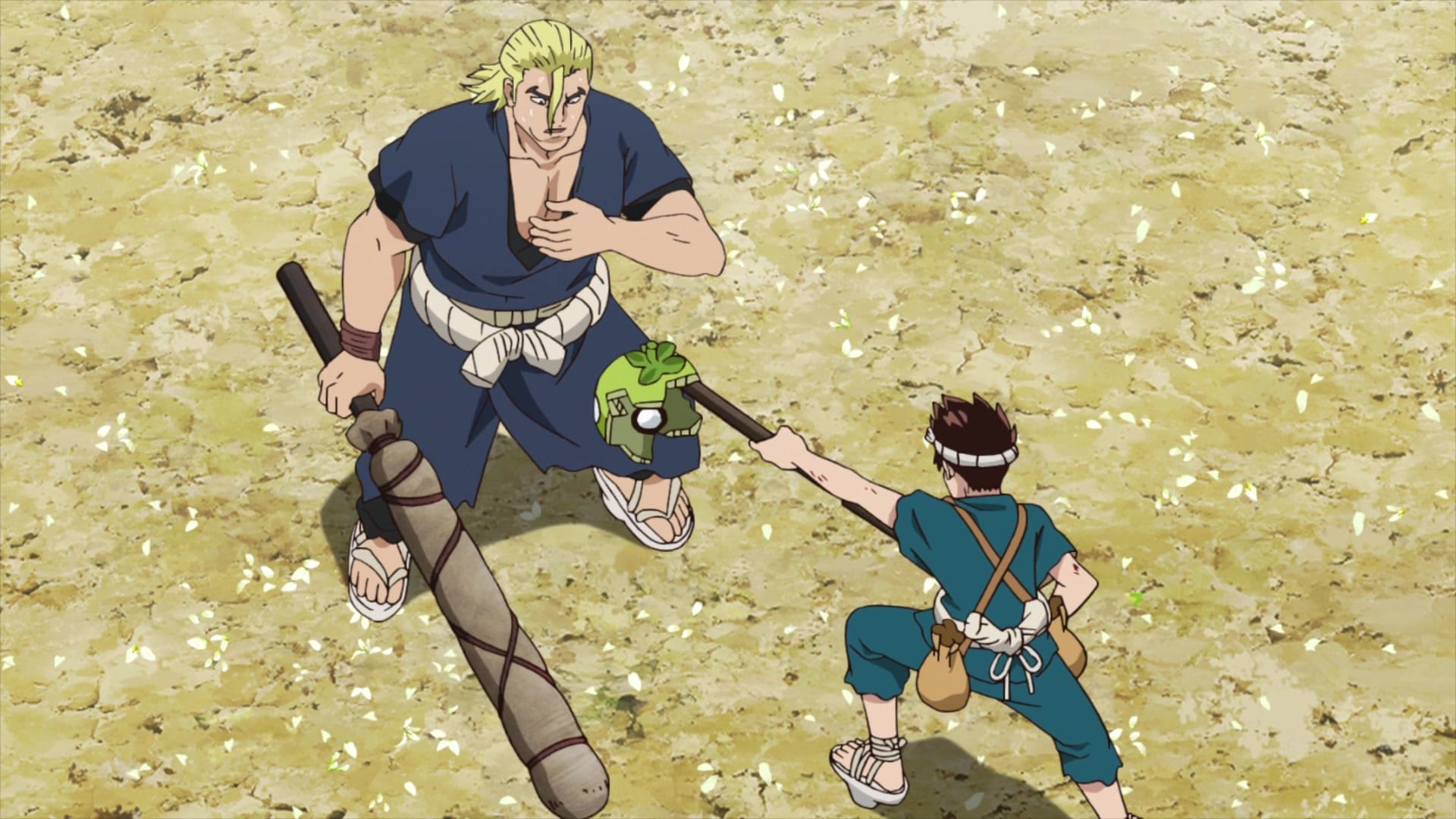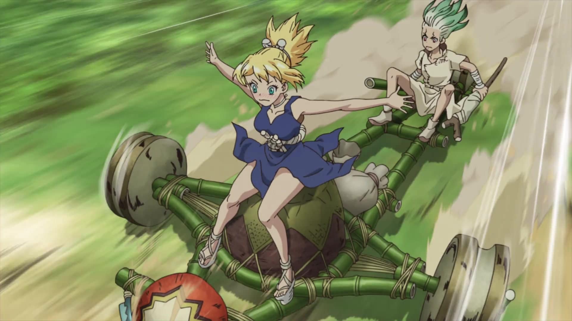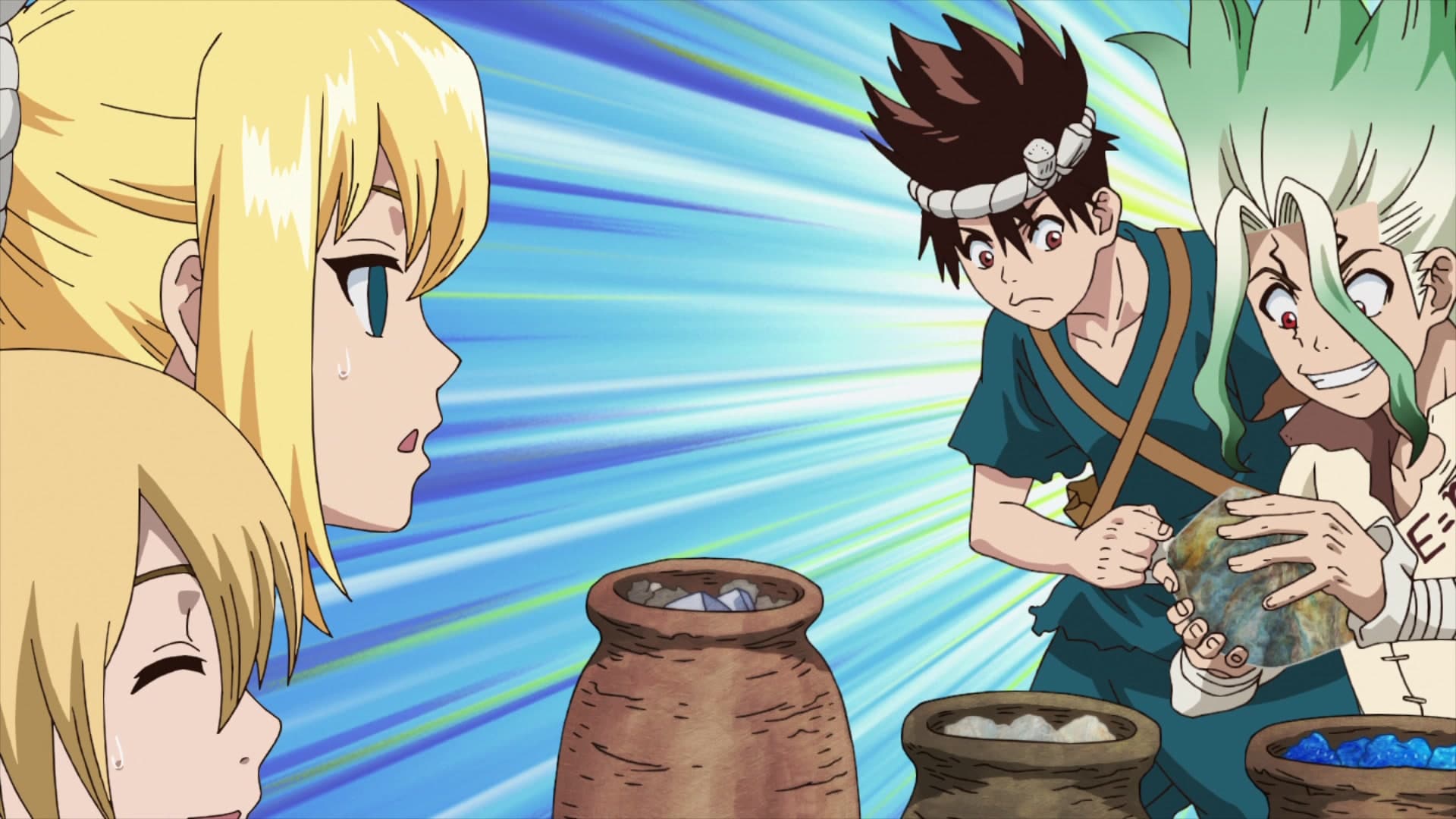 Bevor die gefährlichste Zutat für das Antibiotikum gesammelt wird, schweift Senku zu einem anderen Projekt um. Das Mädchen Suika hat eine Melone auf dem Kopf, da sie an „Schwummeritis“ leidet. Sie kann nicht vernünftig sehen, weswegen sich Senku entscheidet ihr eine Brille herzustellen. Auch der Dorfwächter Kinro leidet an einer Sehschwäche, die seine Kampfkünste beeinträchtigt. Sein Partner Ginro weiß davon Bescheid, aber Kinro will es geheim halten, da er der Überzeugung ist, dass er auch ohne Brille gut klar kommt.
