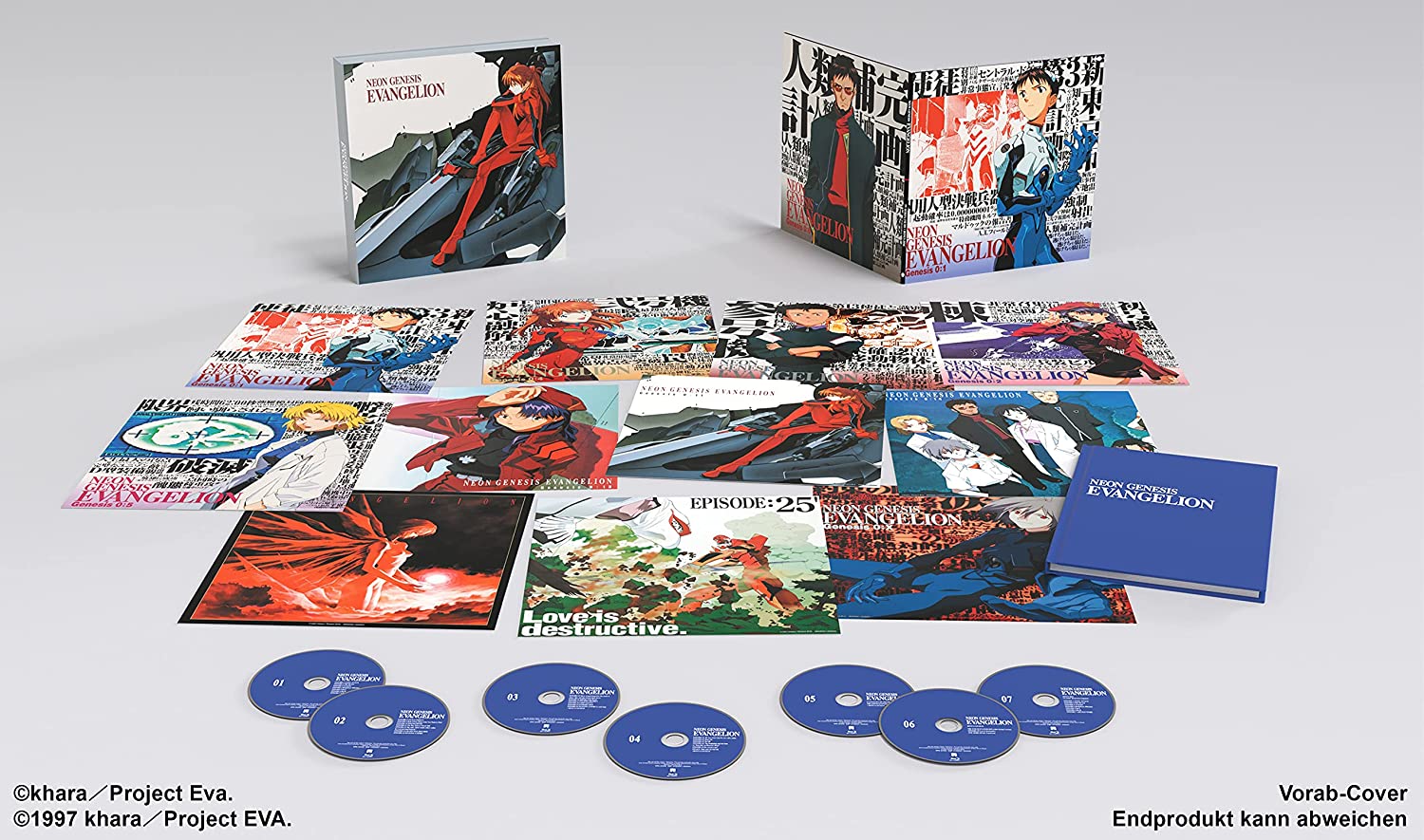 Der Anime erscheint laut Amazon am 31. Dezember 2021 im Handel, wobei es sich jedoch noch um einen Filler-Termin handeln dürfte. Sobald der genaue Termin feststeht, informieren wir euch natürlich darüber. Die Serie soll dabei als Limited Collector’s Edition mit jeweils sieben Discs auf DVD und Blu-Ray veröffentlicht werden. Diese wird neben der kompletten Serie mit der ursprünglichen deutschen Synchronisation aus dem Jahr 2004 zusätzlich die Filme „EVANGELION:DEATH (TRUE)²“ (OmU) sowie „THE END OF EVANGELION“ (OmU) umfassen. Darüber hinaus werden exklusive Videoextras sowie ein Booklet mit 160 Seiten und 11 Special-Artcards geboten. Allerdings werden einige Extras aus Kapazitätsgründen ausschließlich in der Blu-ray-Komplettbox enthalten sein.