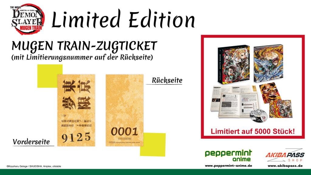 Im Rahmen des AKIBA PASS FESTA gab der Publisher peppermint anime den Disc-Releasetermin des Anime-Films „Demon Slayer – The Movie: Mugen Train“ bekannt.