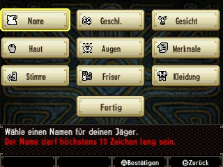 Zu Beginn des Spiels muss man sich seinen Jäger erstellen. Hierbei werden dem Spieler viele Merkmale angeboten, um den Charakter zu seiner vollsten Zufriedenheit zu kreieren. So kann man neben dem Geschlecht und des Aussehens auch die Stimme und den Kleidungsstil festlegen. Hat man das nun geschafft, kommt bereits eine Neuerung zum Vorschein. In Monster Hunter Generations kann zwischen vier verschiedenen Jagdstilen und drei Jagdtechniken ausgewählt werden. Die Jagdstile prägen die Art des Kämpfens und sind sowohl für altgediente als auch für neue Spieler geeignet. Die ersten beiden, also Gildenstil und Schlägerstil sind für den Monsterjäger-Novizen ideal. Der Luftkampfstil und Konterstil werden eher für erfahrenere Spieler empfohlen, jedoch kann im Spiel immer zwischen den Stilen gewechselt werden, wenn man sich nicht sicher ist, oder einfach etwas Anderes ausprobieren möchte.