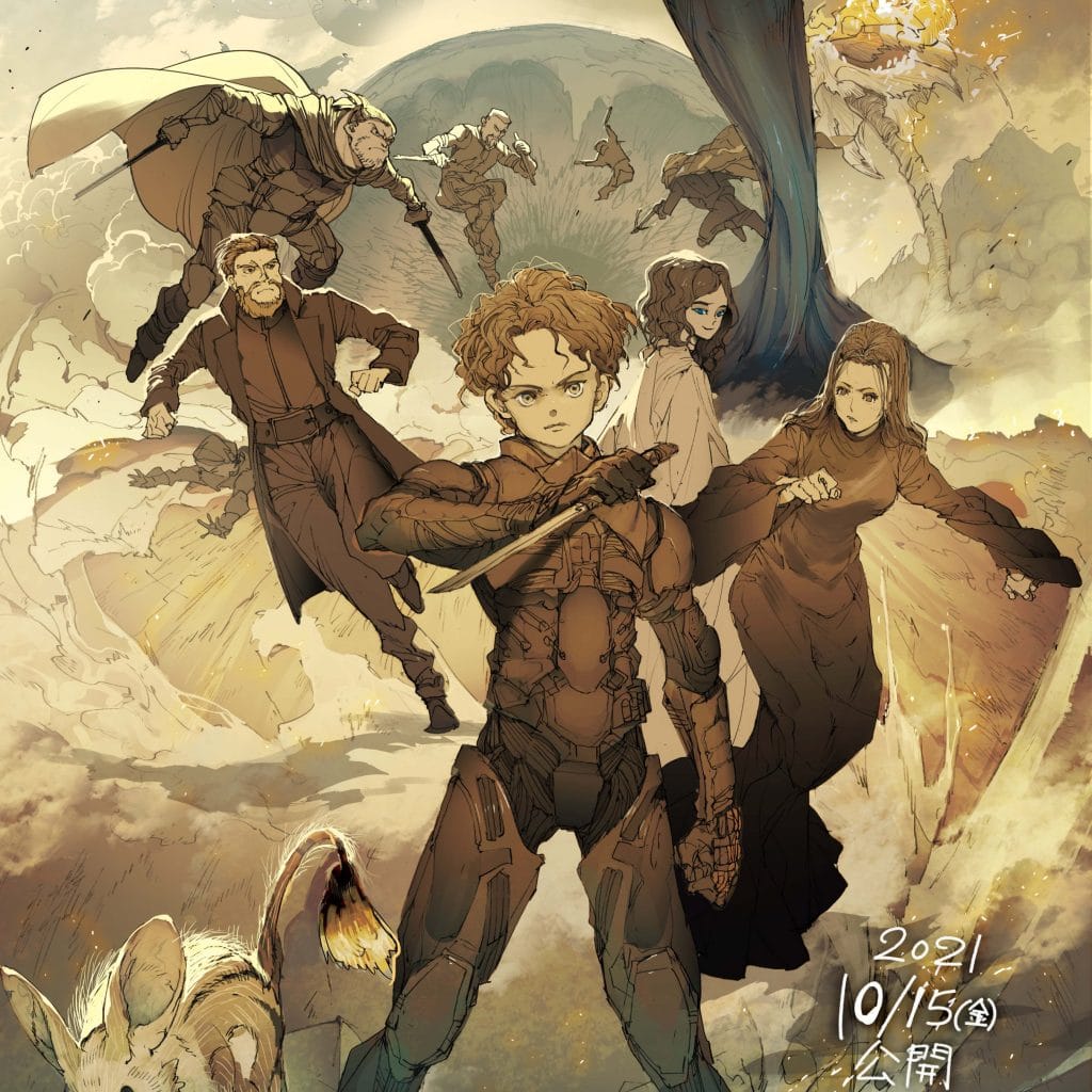 Um den amerikanischen Sci-fi-Film „Dune“ zu bewerben, zeichnete Posuka Demizu ein Werbebild. Die Illustration zeigt den Protagonisten Paul, Charaktere aus dem Haus Atreides, sowie Baron Vladimir Harkonnen und einen Sandwurm.