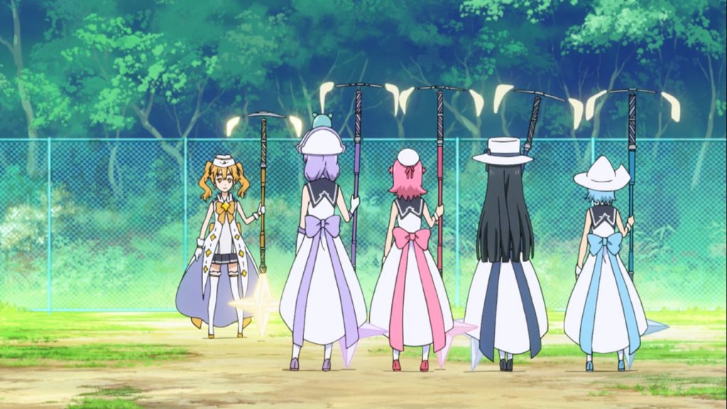 Dieses Mysteriöse macht den Anime und seine Handlung dann doch etwas besser als der typische Genrevertreter. Dazu kommen auch die alltäglichen Probleme der Charaktere, das sie Miteinander klarkommen müssen. Vor allem Subaru ist hier irgendwo zwischen ganz realistisch und typischen Magical Girl Klischee. Als Zuschauer hat man das Gefühl, das Alien gibt einen immer wieder Hinweise auf etwas, wenn es von anderen Dimensionen redet. Doch schlau wird man daraus nach drei Folgen nicht. Genauso wie der Antagonist, er ist aktuell nur da und will auch die Antriebsteile, doch die Frage warum, wird nicht beantwortet, was natürlich logisch ist, man muss ja einen Handlungsbogen für die zwölf Episoden aufbauen.
