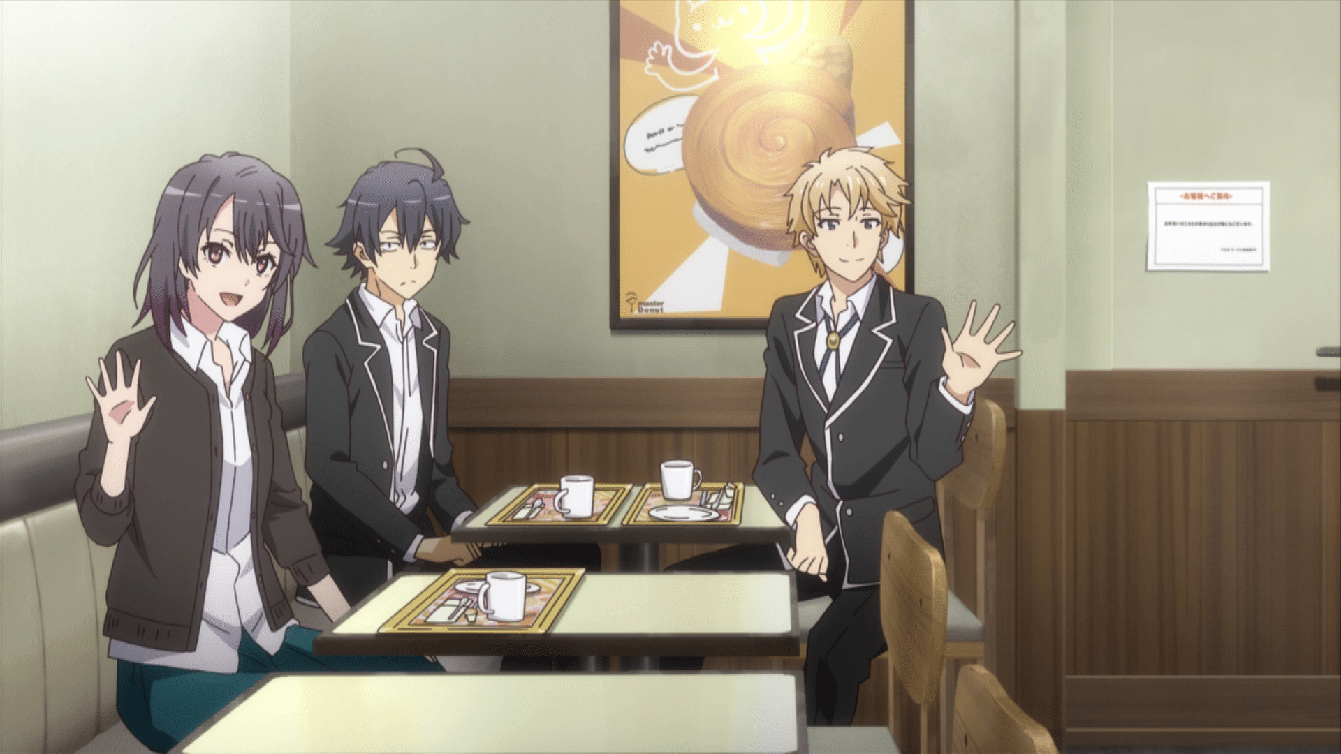 Im Gespräch mit Haruno und Hachiman lassen die beiden durchblicken, dass es vor allem Chika ist, die Interesse an Hachimans Klassenkamerad Hayato hat, denn dieser ist über die Schulgrenzen hinaus als cooler Typ bekannt. Hachiman lehnt jedoch ab die beiden miteinander bekannt zu machen, doch Haruno, die immer nur auf der Suche nach der interessantesten Entwicklung zu sein scheint, ruft Hayato sofort an und ordert ihn in den Donut-Laden. Dort unterhalten sich die fünf dann, bis Kaori und Chika gehen müssen und als auch Haruno verschwunden ist, merkt Hayato gegenüber Hachiman an, dass Yukinos große Schwester ihn offenbar für interessant hält, denn Personen, bei denen das nicht der Fall ist, ignoriert sie komplett.