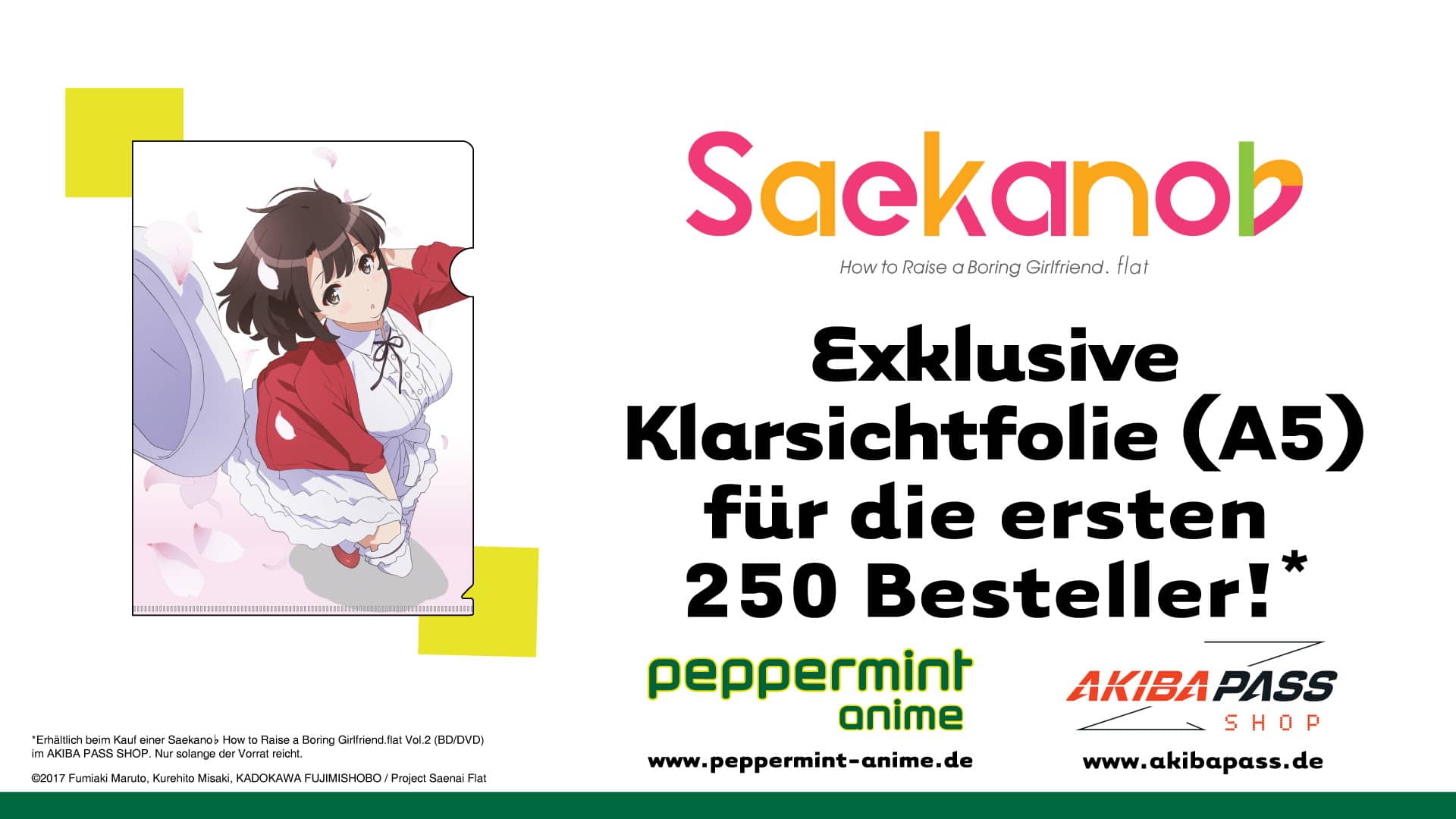 Die erste Staffel des TV-Anime wurde in Japan ab Januar 2015 ausgestrahlt. Die Serie entstand unter der Regie von Kanta Kamei im Studio A-1 Pictures. Für das Drehbuch von Fumiaki Maruta verantwortliche. Hiesige Fans konnten die Serie damals beim Streaming-Anbieter Crunchyroll im Simulcast verfolgen. Die zweite Staffel mit dem Titel „Saekano♭ How to Raise a Boring Girlfriend.flat“ feierte ihre TV-Premiere im April 2018 und wurde hierzulande von Amazon Prime Video im Simulcast ausgestrahlt. Ein Disc-Release der ersten Staffel erfolgt ebenfalls bei peppermint anime. Das erste Volume erscheint offiziell am morgigen 17. Februar 2022 im Handel.