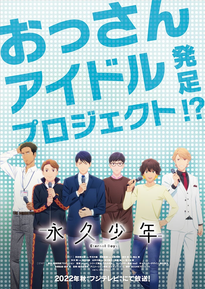 Durch eine neu veröffentlichte Webseite zum Projekt wurde heute bekannt gegeben, dass das Studio LIDEN FILMS derzeit an einem neuen Original-Anime mit dem Titel „Eternal Boys“ arbeitet, der sich auf männliche Idols im mittleren Alter fokussieren wird.