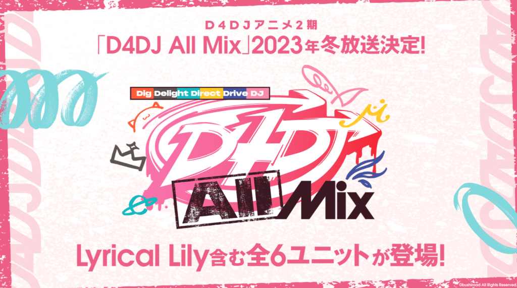 Die zweite Staffel trägt den Titel „D4DJ All Mix“ und wird in Japan im Winter 2023 TV-Premiere feiern. Ein konkreter Starttermin ist bislang nicht bekannt. Auch wurden keine Details zur Umsetzung genannt.