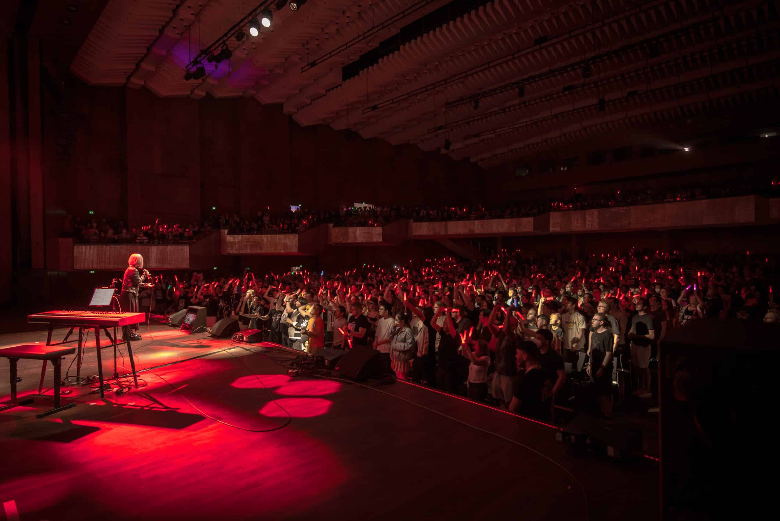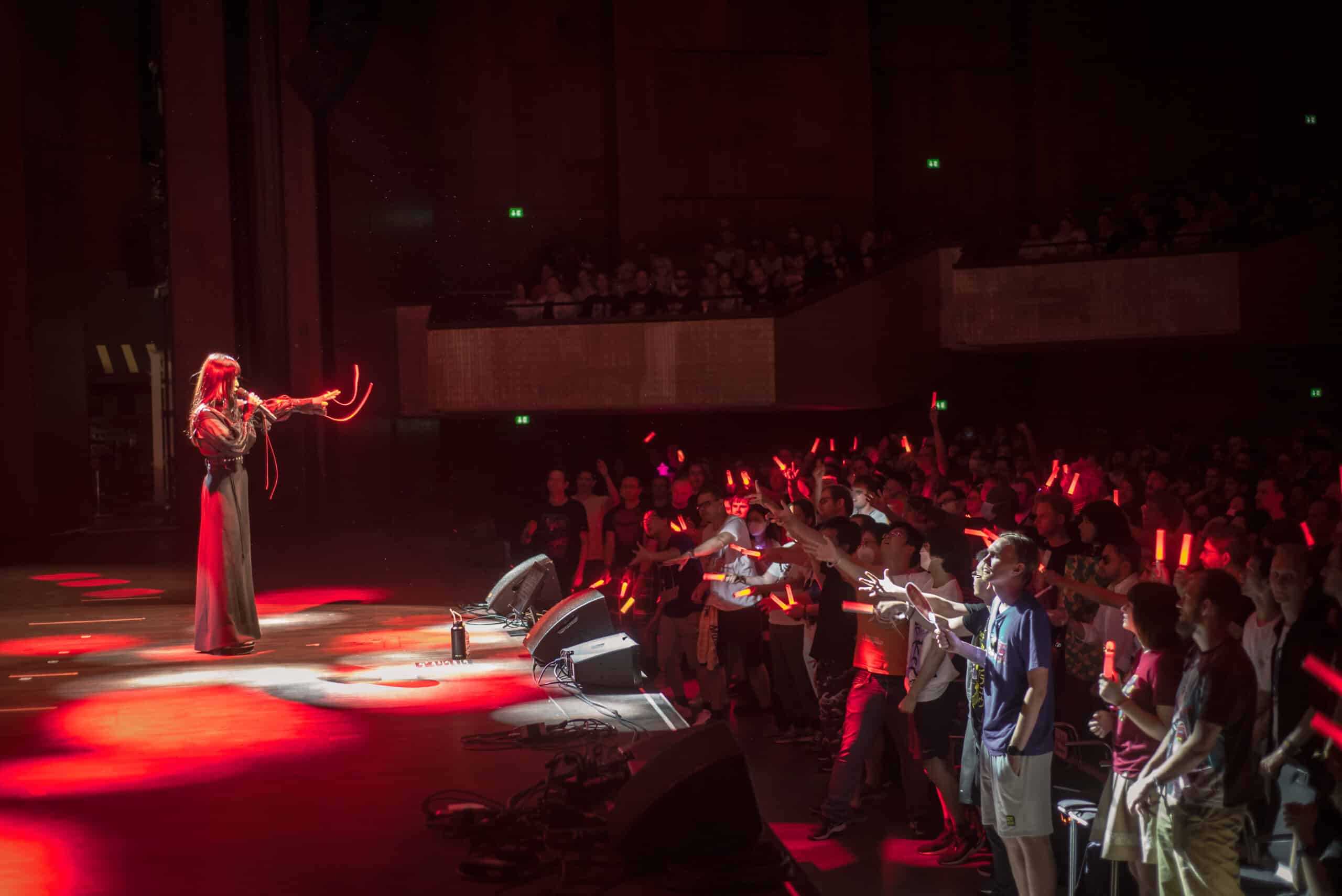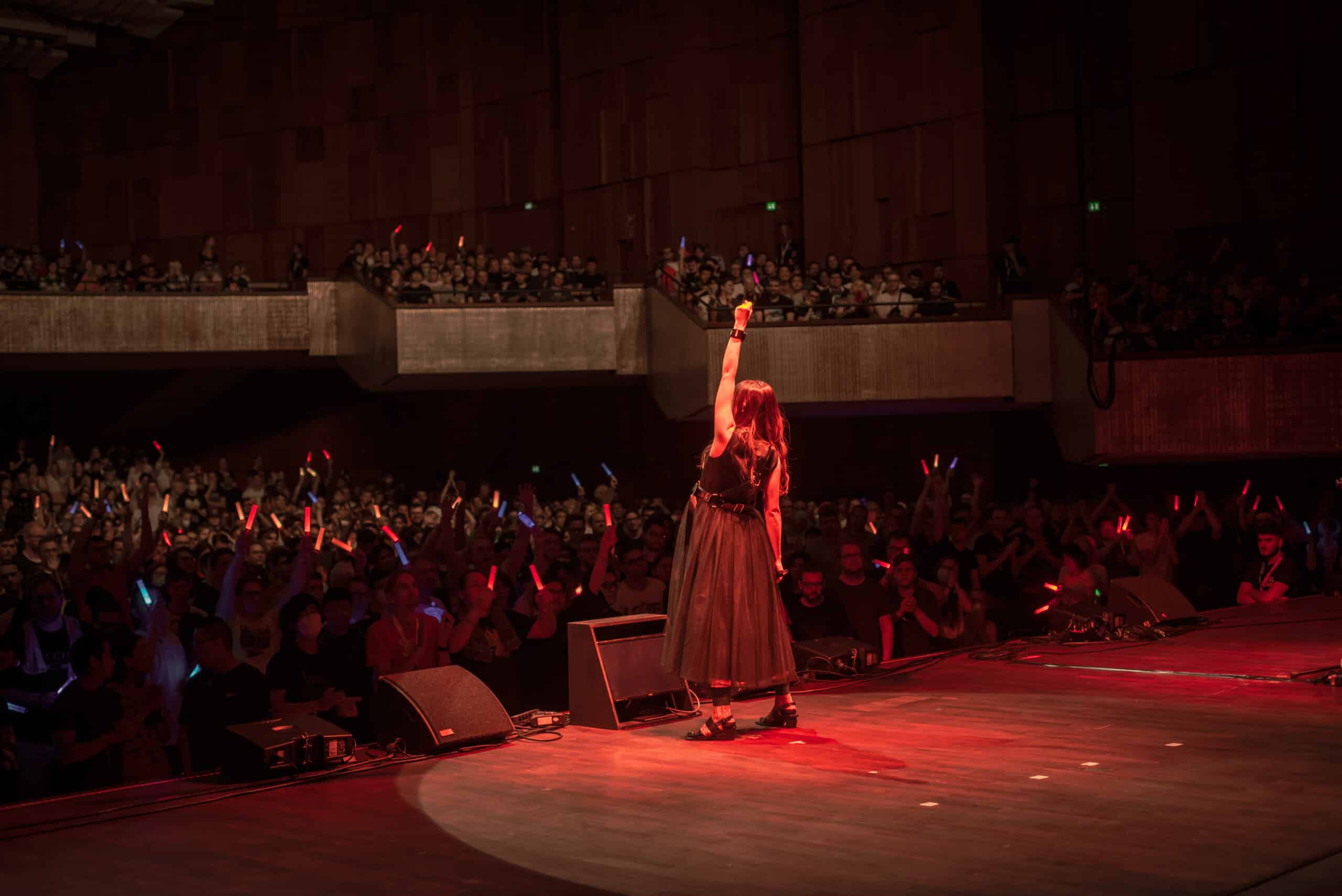 Doch unter die große Freude und Leidenschaft all derer, die für diese großartigen Auftritte einen Platz im Saal ergattern konnten, mischte sich natürlich auch Frust und Trauer bei denjenigen, die eben nicht mehr in den Saal gekommen sind. Natürlich ist es nicht schön, dass Fans, die ja auch viel Geld für ihre Tickets bezahlt haben, am Ende dann keine Möglichkeit hatten, diese Konzerte zu erleben. Doch muss man festhalten, dass sich die konstruktive Kritik – u.a. via Twitter – leider in Grenzen hielt. Wie in solchen Situationen üblich mutierten plötzlich alle möglichen Personen ganz schnell zu den geborenen Eventmanagern und wussten daher natürlich, wie man es besser macht. Dabei reichten die Meinungen von einfachen vorschlagslosen Beschwerden wie „Die Veranstalter müssen sich da auf jeden Fall irgendwas einfallen lassen“ über wenig durchdachte Vorschläge a la „Man hätte dafür sorgen müssen, dass der Saal nach jeder Veranstaltung geräumt wird“. Dabei ist es nicht die Methodik, sondern die begrenzte Kapazität des Saals, die das Grundproblem darstellt. Am Ende ist es nämlich leider egal, welche Fans nun im Saal sitzen. Es wird so oder so die gleiche Anzahl an Personen vor den geschlossenen Türen stehen und sich ärgern, dass sie eben keinen Platz mehr erhalten haben. Eine entsprechend einfache Lösung dafür gibt es leider nicht. Aber zumindest war dafür gesorgt, dass bereits am Sonntag alle drei Sängerinnen von SACRA MUSIC gemeinsam noch ein weiteres Konzert gaben, so dass die Besucher, die auch an diesem Tag zugegen waren, noch eine weitere Chance hatten. Für unseren Redakteur Steffen war der Samstag mit dem Konzert von Aimer auch beendet, doch natürlich gab es auch an diesem Tag wieder ein entsprechendes Abendprogramm mit diversen Filmen.