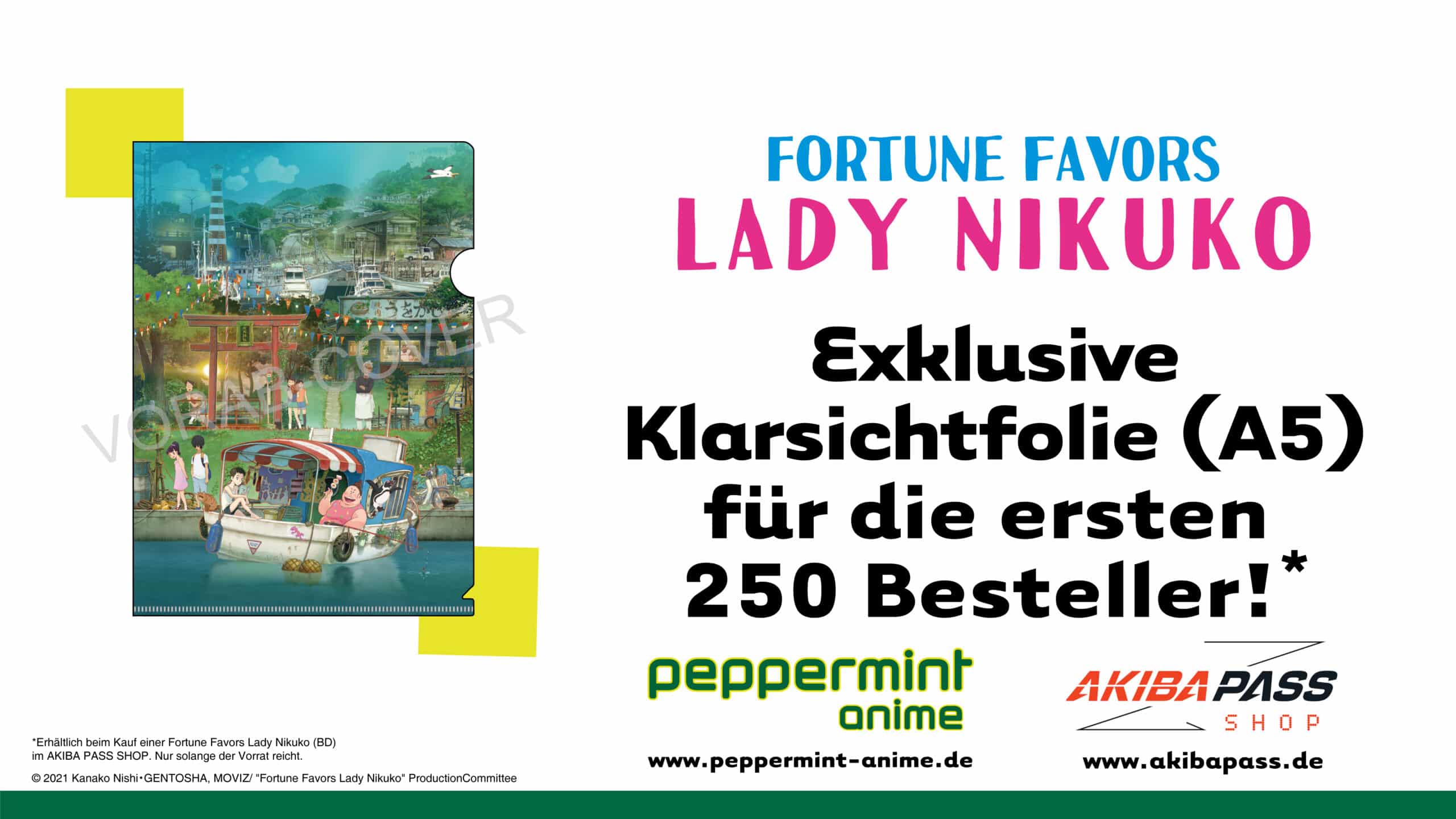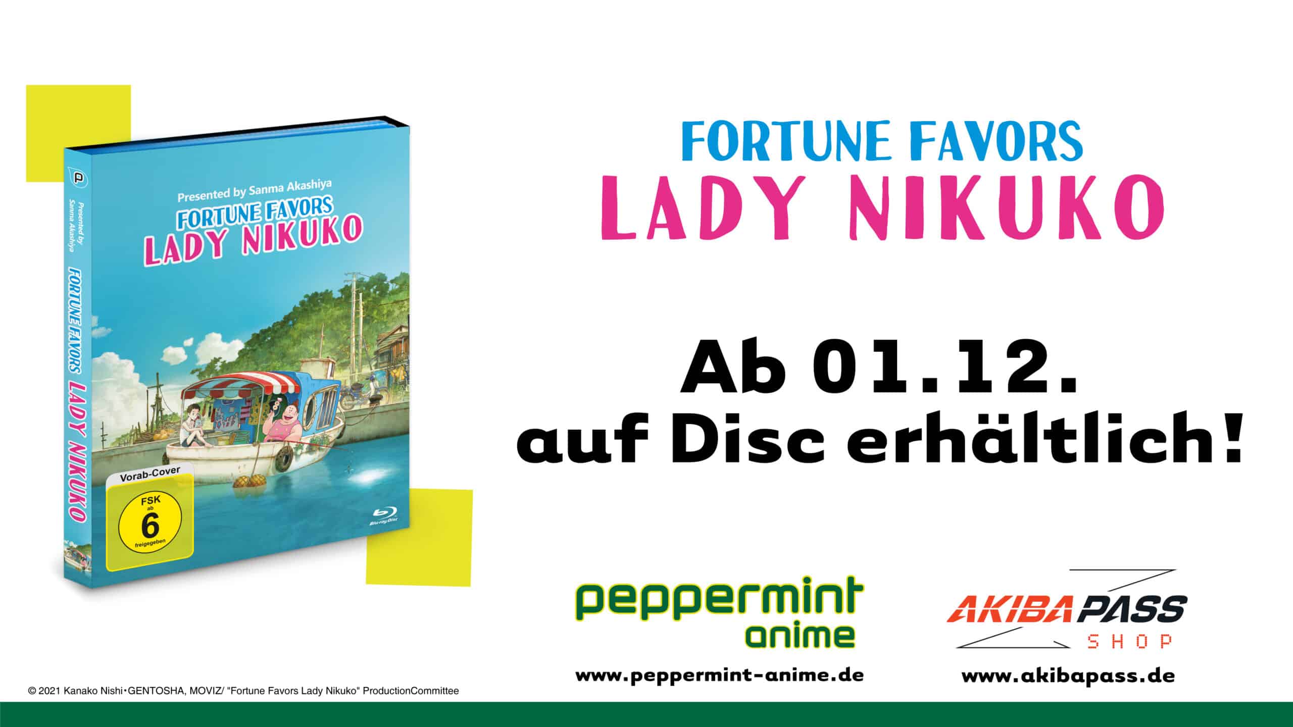 Bereits Ende Juli berichteten wir darüber, dass peppermint anime den Film „Fortune Favors Lady Nikuko“ auf Disc in den Handel bringen wird. Nun gibt es zum Release auch diverse Details und eine Vorbestellung im AKIBA PASS Shop ist möglich.