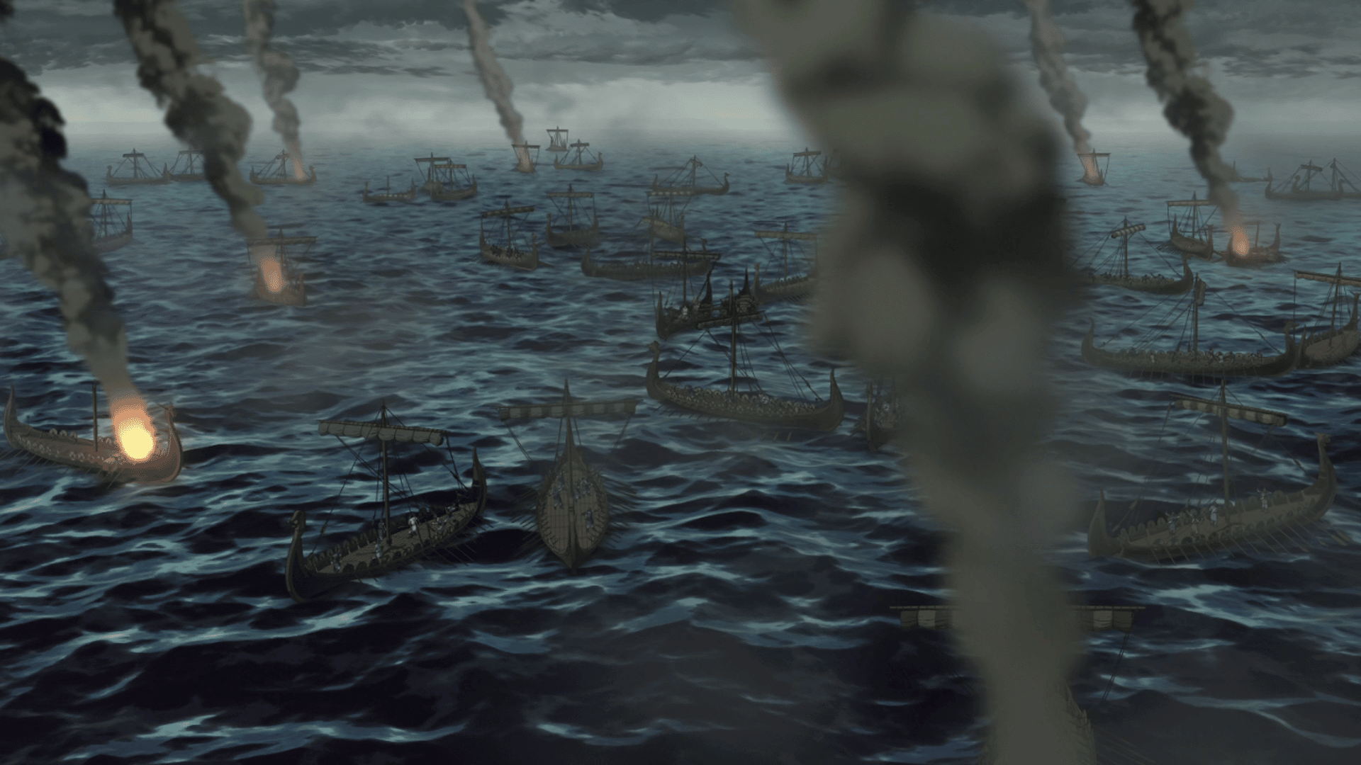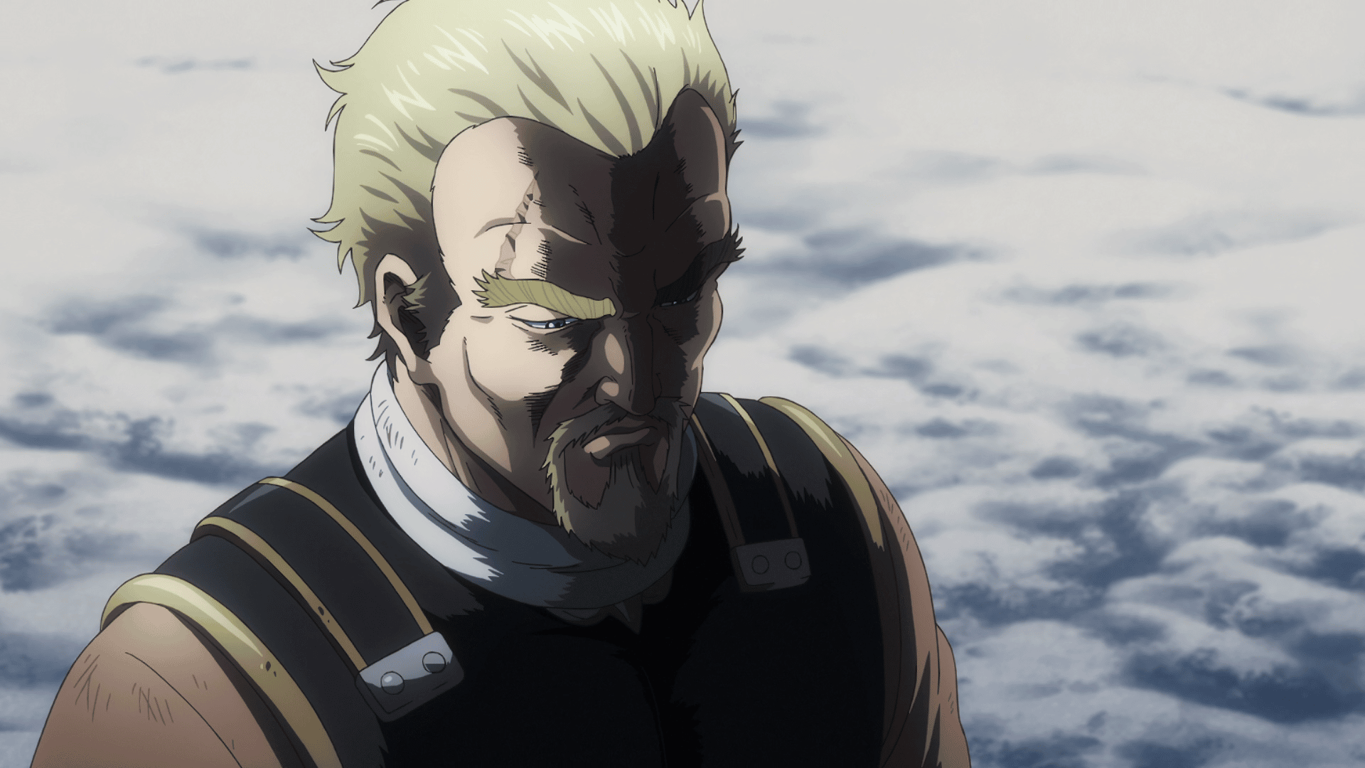 Mutig stellt sich Thors den Angreifern alleine entgegen und schaltet einen Mann nach dem anderen aus. Mehr als 80% eines Schiffes kann er mit bloßen Fäusten niederstrecken, bis sich ihm Björn entgegenstellt. Björn ist sowas wie die rechte Hand von Askeladd. Bevor er Thors gegenübersteht, isst er einen sogenannten „Berserker“-Pilz, wodurch er in Rage verfällt und monströse Kräfte erlangt. Zwischen Freund und Feind kann er nicht mehr unterscheiden, sodass er die restlichen Anhänger seiner Mannschaft umnietet. Ein großer Auftritt also für einen relativ kurzen Kampf, denn Björn wird nach nur zwei Schlägen von Thors KO geschlagen. Der Troll von Jom ist das wahre Monster hier! Nun geht es weiter zum zweiten Schiff, doch bevor Thors auch die Männer vernichtend schlägt, gibt er ihnen noch einmal die Chance sich zurückzuziehen. Die Männer, die für Geld alles machen würden, lehnen dankend ab. Im Gegenteil sogar, Askeladd stellt sich seinem Feind mutig gegenüber. Er scheint ihn sogar zu kennen und plötzlich schimmert es Thors ein. Er kann nur von Floki beauftragt worden sein und so ist es auch.