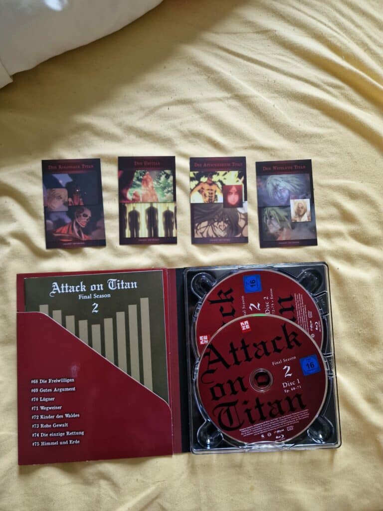 Wie ihr es bereits kennt: Die physische Umsetzung des Produkts ist natürlich wieder kein wertungsrelevanter Punkt unserer Kritik, soll euch aber ein Bild vom dem vermitteln, was ihr als Käufer erwarten könnt. Die folgende Beschreibung und die Bilder beziehen sich dabei auf die Blu-Ray-Version des zweiten Volumes von „Attack on Titan Final Season“.