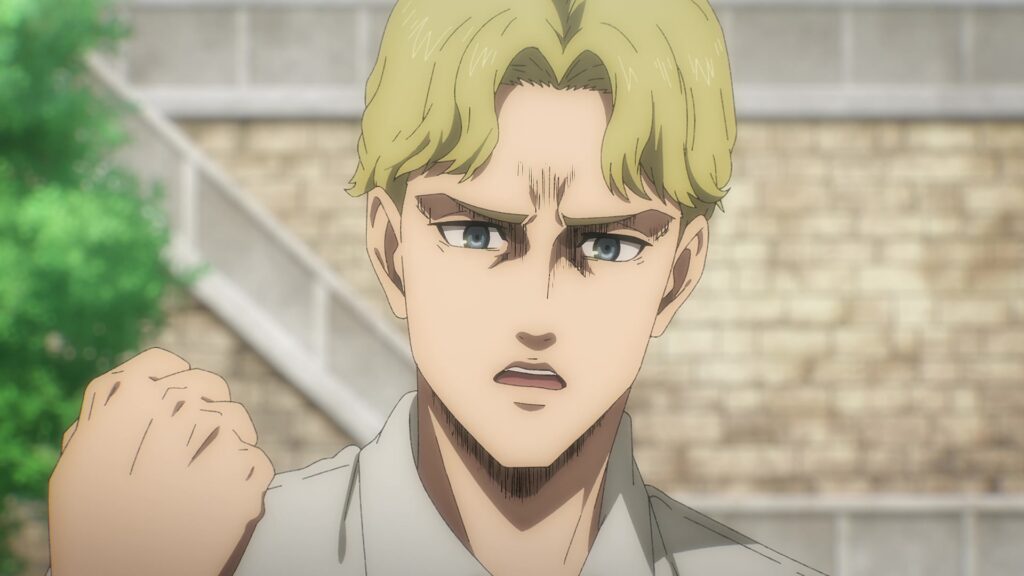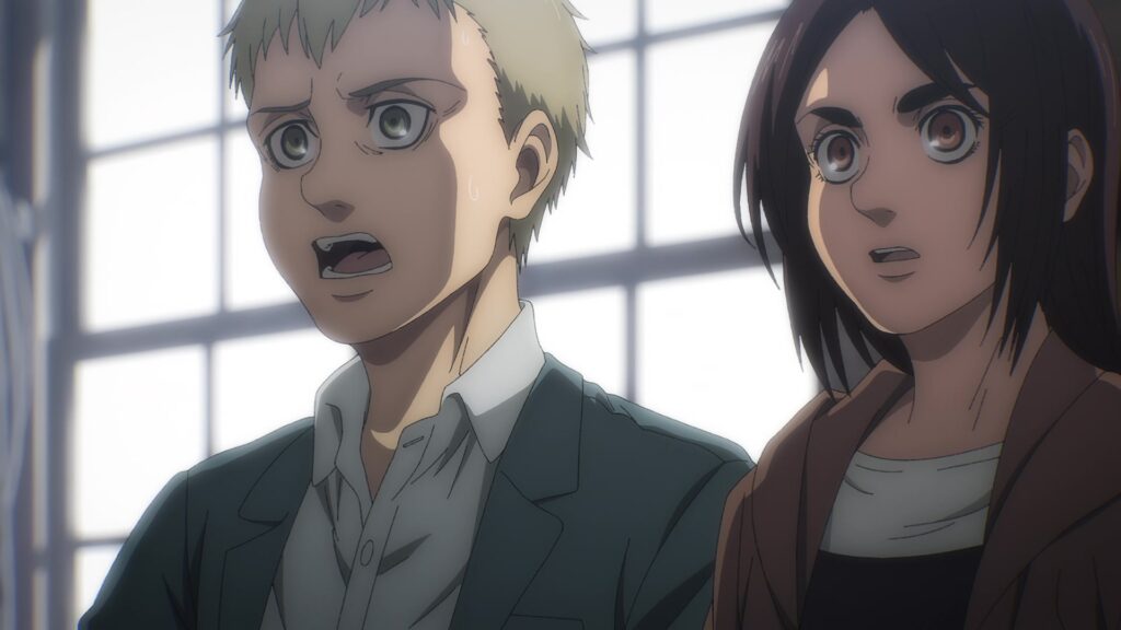 Während Eren aus für den Zuschauer zunächst unbekannten Gründen im Gefängnis sitzt, schaffen die gefangen genommenen Rekruten Gabi und Falco die Flucht. Gabi ist immer noch voll Hass und jeder Einwohner der Insel ist für sie ein Teufel. Das ändert sich allmählich, als sie auf einem Bauernhof für Waisen aufgenommen werden und dort nach und nach merken, dass der Mythos, dass die Insel voll bösartiger Menschen bevölkert ist, nicht stimmt. Marley fasst hingegen in dieser Zeit einen folgenreichen Entschluss. Sie ahnen, dass Zeke ein Verräter ist und wollen nicht warten, bis sie mit anderen Ländern eine große Allianz gebildet haben, da das viel Zeit kosten würde und Paradis genügend Zeit für Gegenmaßnahmen treffen könnte. Deswegen beschließen sie, sofort in den Krieg zu ziehen. Zwar geschwächt, aber dafür mit dem Überraschungsmoment auf ihrer Seite.