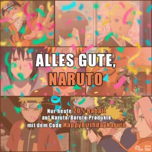 An der Aktion nehmen alle Produkte aus der Welt von „Naruto“ und „Boruto“ teil, welche bislang erschienen und im Handel sind. Mit dem Code HappyBirthdayNaruto gibt es dann 20 % auf die gesamte Bestellung. Mit dabei sind neben den Blu-Ray- und DVD-Discs auch Mangas und verschiedenes Merchandise wie Tassen, Rucksäcke, Schlüsselanhänger u.v.m.!