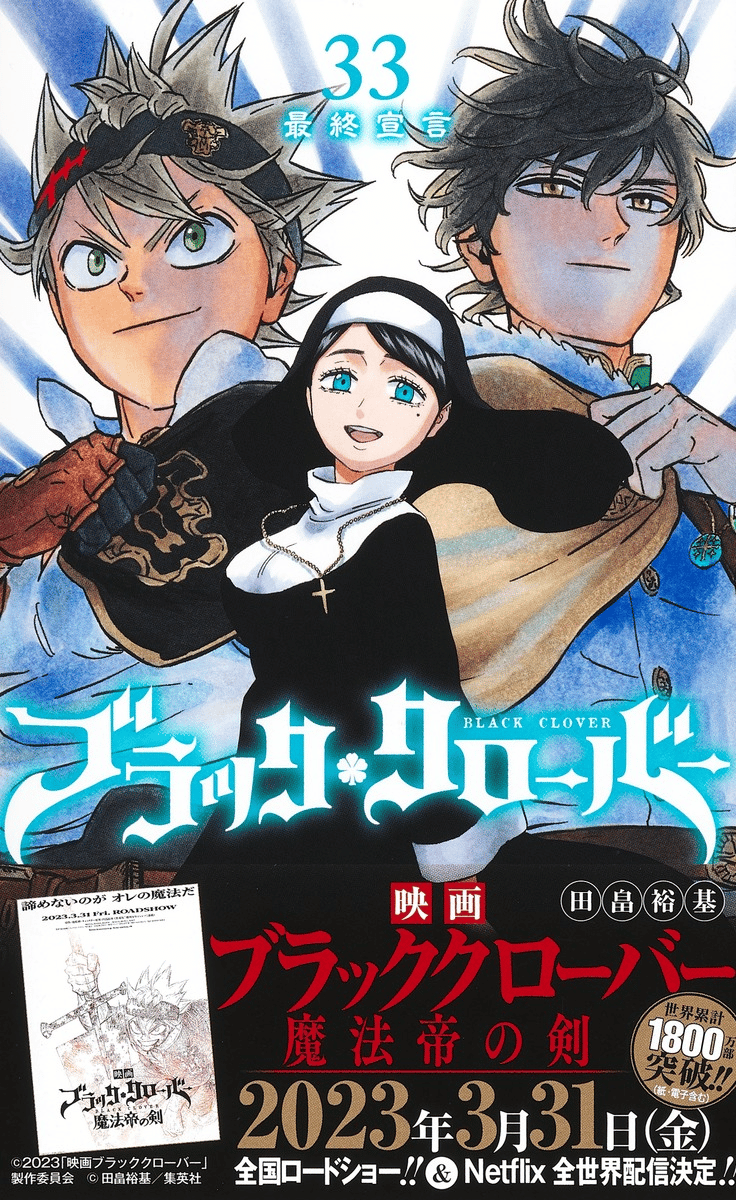 Somit erreicht „Black Clover“ bereits eine Gesamtauflage von 18 Millionen verkauften Exemplaren weltweit. Die Zahl bezieht sich sowohl auf die Print- als auch digitale Fassung. Zuletzt erreichte der „Weekly Shonen JUMP“-Titel im Dezember 2021 die 17 Millionen.