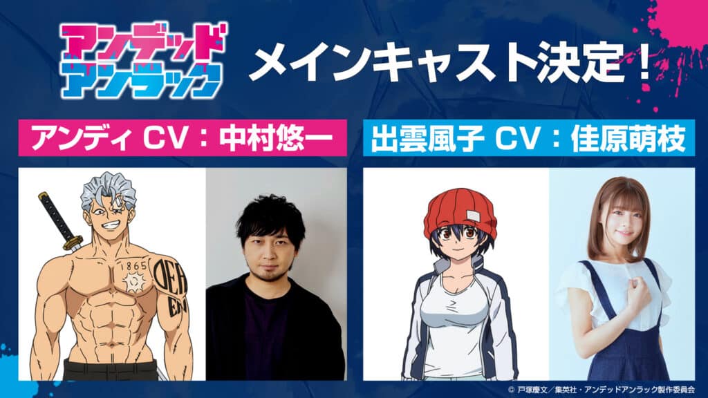Wie wir bereits berichteten, erhält der „Undead Unluck“–Manga von Yoshifumi Tozuka im nächsten Jahr eine Anime–Adaption. Nun ist bekannt, wer die Protagonisten Andy und Fuuko Izumo sprechen wird.