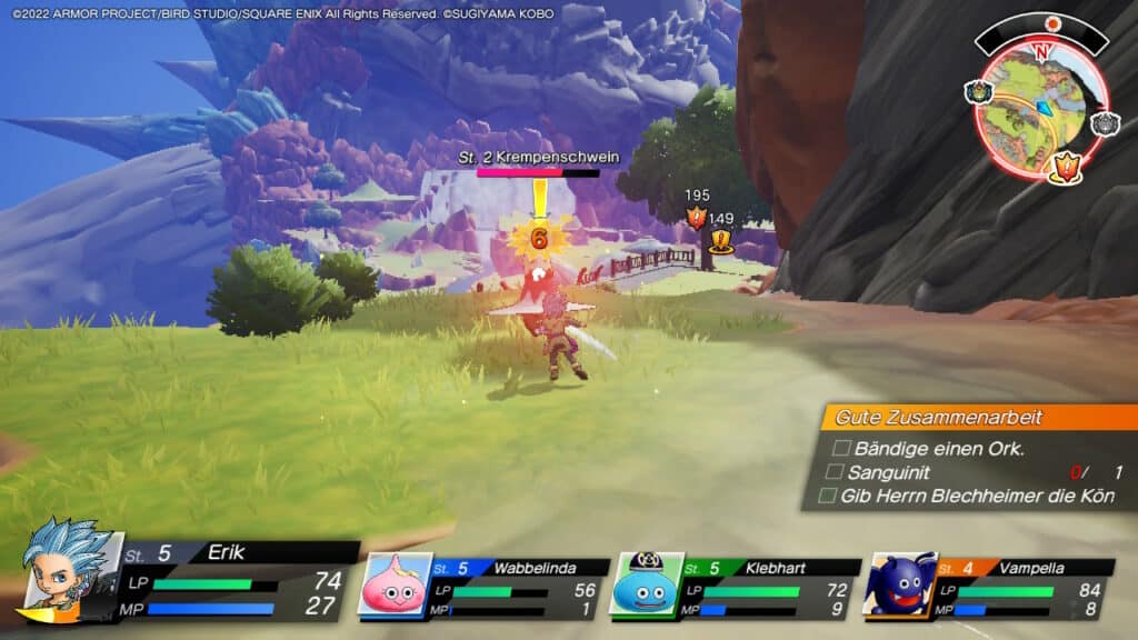 Vom Gameplay her fehlt uns etwas die Herausforderung. Die Angriffe werden stumpf mit einer Taste ausgeführt und es gibt wenig Abwechslung. Tatsächlich kommt es auf die Mitstreiter in Form von Monstern an, wie gut der Kampf verläuft. Es ist eine Art Pokémon in einer Dragon Quest Welt. Fangt und trainiert ihr bessere Monster, werdet ihr ebenfalls besser. Der Protagonist, also der Charakter, den wir durch das Spiel begleiten, gerät uns etwas zu sehr in den Hintergrund. Zusätzlich gibt es beim Fangen von Monstern ebenfalls keinen Nervenkitzel. Ihr müsst lediglich solange gegen diese Art von Monster kämpfen, bis ihr es gebändigt habt. Anschließend geht es in die Basis und ihr könnt euer neues Monster einsammeln.