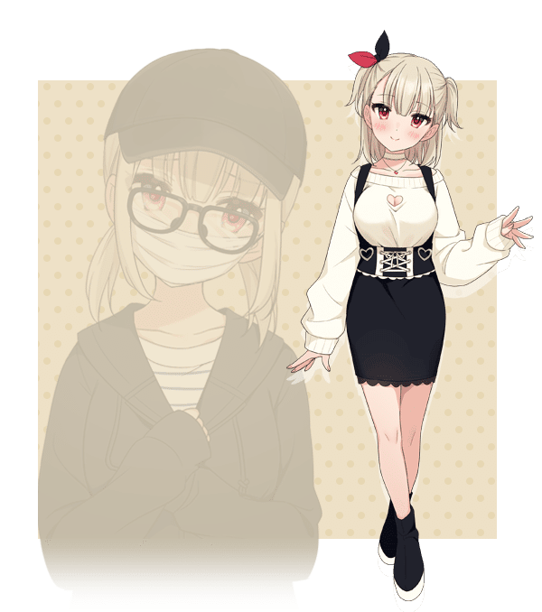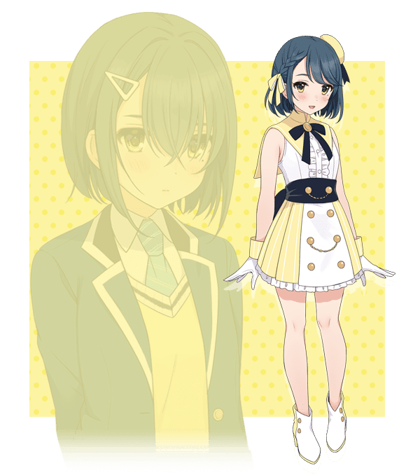 In der Schule ist sie recht schüchtern und spricht nicht viel, doch wenn sie muss, wirkt sie sehr forsch. Ein sehr aggressiver Charakter, deren scharfe Augen durch ihren Pony hindurch schimmern.