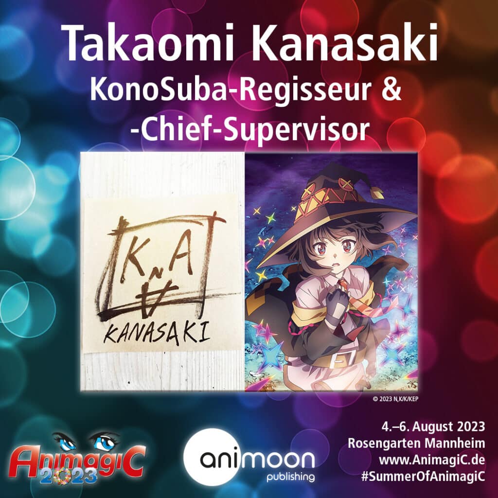 Dabei handelt es sich um den „KonoSuba“-Regisseur und -Supervisor Takaomi Kanasaki, der sich vor Ort in Q&A-Panels den Fragen der Fans stellen und zudem für Autogrammstunden zur Verfügung stehen wird. Der Besuch auf der AnimagiC 2023 wird der erste Europaauftritt von Kanasaki-san sein.