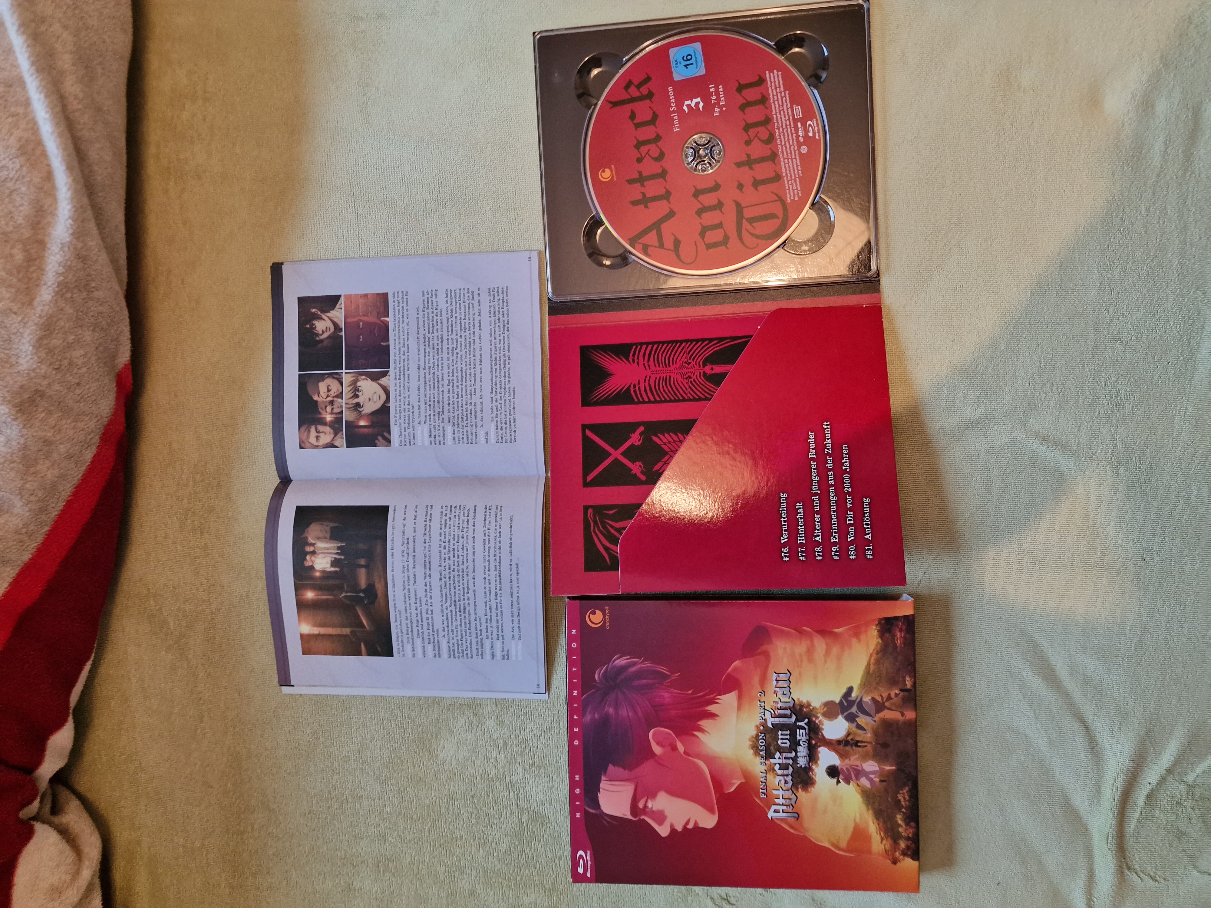 Wie ihr es bereits kennt: Die physische Umsetzung des Produkts ist natürlich wieder kein wertungsrelevanter Punkt unserer Kritik, soll euch aber ein Bild von dem vermitteln, was ihr als Käufer erwarten könnt. Die folgende Beschreibung und die Bilder beziehen sich dabei auf die Blu-Ray-Version des dritten Volumes von „Attack on Titan Final Season“.