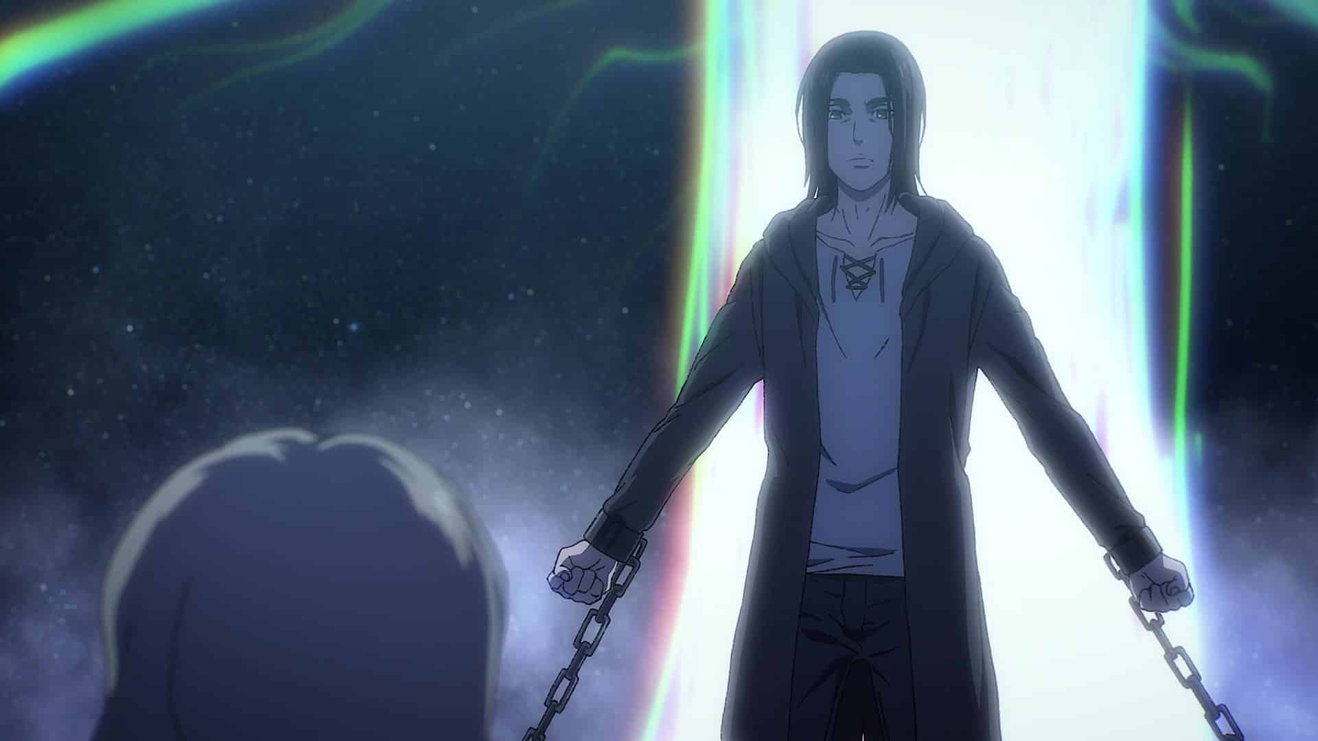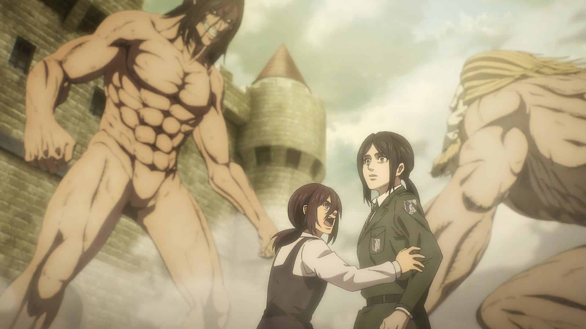 Durch die Hilfe von Mikasa und Armin, die die Angreifer inklusive des Karrentitans, der eine Antititanenwaffe montiert hat, auf der Mauer der Stadt in Schach halten, schafft es Eren, die Oberhand über Reiner und den Kiefertitanen zu gewinnen. Zeke als Tiertitan wurde durch die Waffe des Karrentitanen schwer verletzt, aber er schafft es noch seinen Schrei zu nutzen, um alle, die mit seiner Rückenmarksflüssigkeit in Kontakt kamen, in willenlose Titanen zu verwandeln, darunter auch Falco. Dieser stürzt sich daraufhin erst auf Reiner und möchte ihn fressen, was dazu führen würde, dass er dessen Kräfte erhält und seinen Willen zurück. Er lässt von Reiner jedoch ab und widmet sich dem Kiefertitanen. Eren nutzt währenddessen eine Finte, um auf den schwer verletzten Zeke zuzurennen, wird dabei jedoch von Gabi mit einem gezielten Schuss enthauptet. Bevor sein Leben endet, berührt ihn Zeke jedoch noch und so findet sich Eren in einer Art Zwischenwelt wieder, in der Ymir zuhause ist. Er offenbart dort Zeke, der ebenfalls dort ist, dass er ihren Plan gegen die Eldia nicht durchsetzen wird. Zeke hat so etwas erwartet und reißt mit ihm in die Erinnerungen des gemeinsamen Vaters, um Eren zu überzeugen, jedoch erkennt Zeke selbst, dass vieles nicht so ist, wie er es die ganze Zeit gedacht hatte.