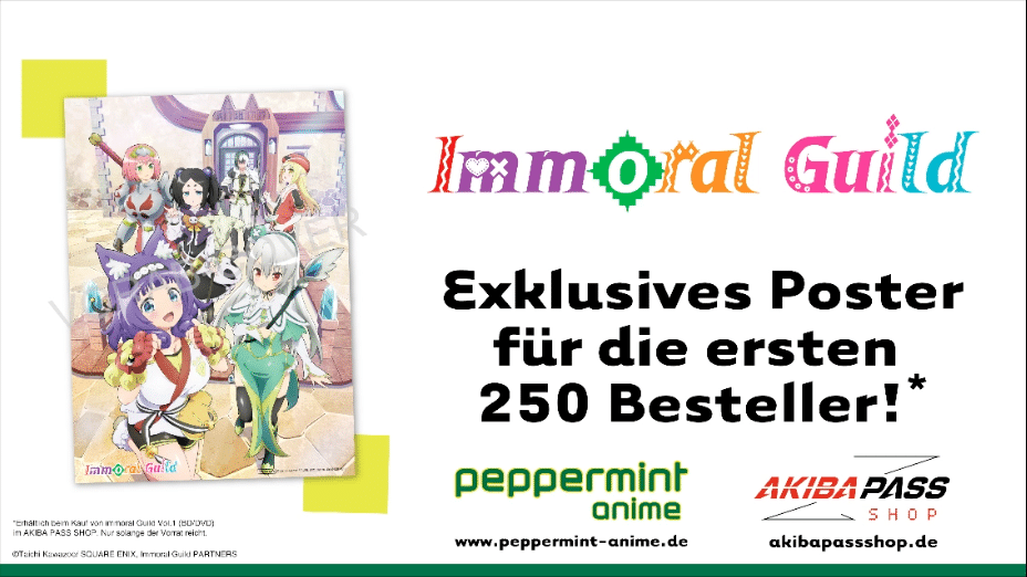 Heute endete die Early Bird-Phase der Anime-Serie „Immoral Guild“ beim Publisher peppermint anime. Nun gab man neue Details zum Disc-Release bekannt.
