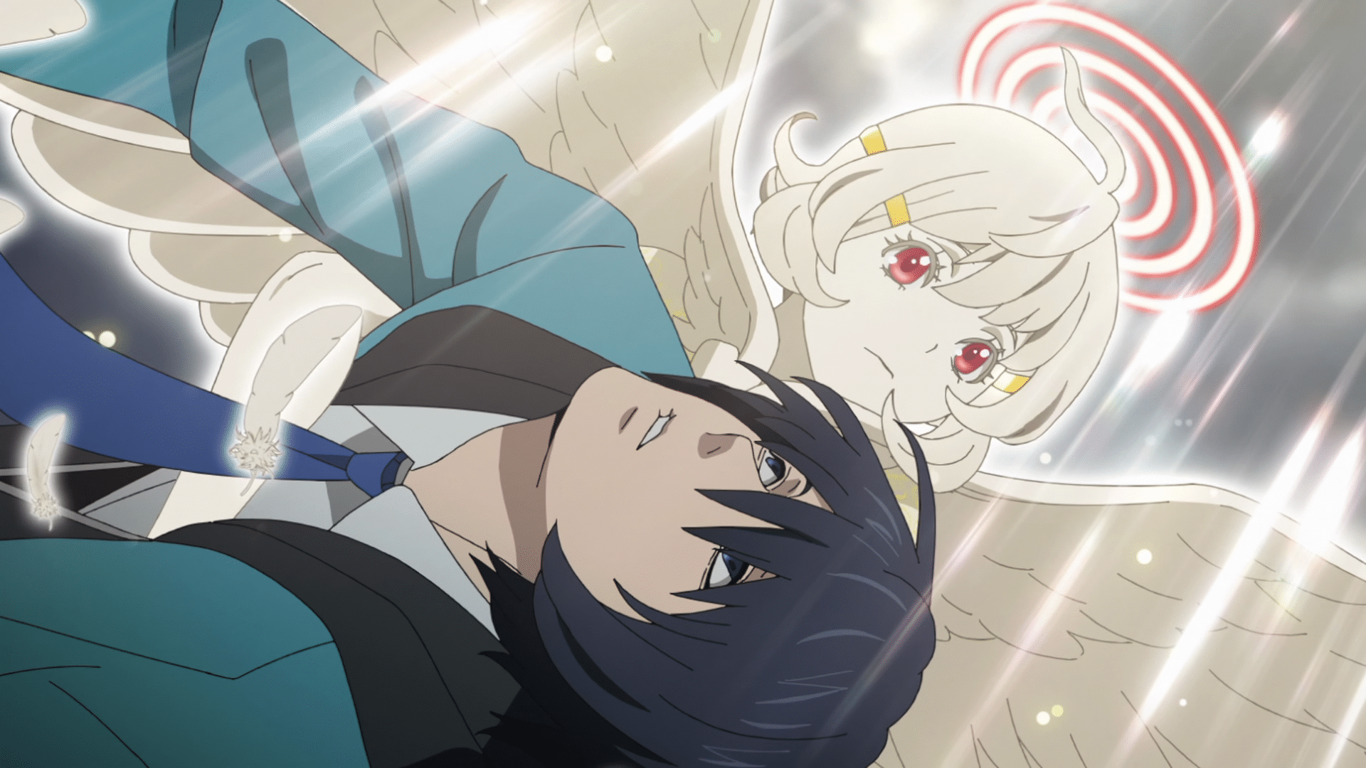 Der Engel prophezeit Mirai Kakehashi eine rosige Zukunft mit Freiheit und Liebe, doch wie soll das funktionieren? Der namenlose Engel widerspricht und demonstriert zeitgleich, was sie mit Freiheit meint – die engelsgleichen Flügel. Mit ihnen kann der Engel schneller fliegen, als das menschliche Auge sehen kann. Und für die Liebe existiert der sogenannte Engelspfeil. Ob Mann oder Frau – wer von diesem roten Pfeil getroffen wird, wird sich unsterblich in den Absender verlieben. Nun liegt die Wahl bei Mirai Kakehashi – Entscheidet er sich für die Flügel oder doch die Pfeile? Total unsicher sagt er, dass er beides nehmen würde, um sich später zu entscheiden. Dass der Engel es absegnet, damit konnte er jedoch nicht rechnen. Eher es sich versehen kann, wird er mit zwei roten Reifen abgeschossen, wodurch er nun selber die angesprochenen Kräfte erhält – ob er es will, oder nicht. Er braucht sich über die Ringe keine Sorgen machen, denn es ist für andere Menschen nicht sichtbar. Wobei, das stimmt nicht ganz, denn für andere Menschen mit einem Engel ist es das. Also gibt es noch mehr von der Sorte, doch was wollen die Engel bezwecken? Ganz einfach – die Suche nach dem nächsten Gott.