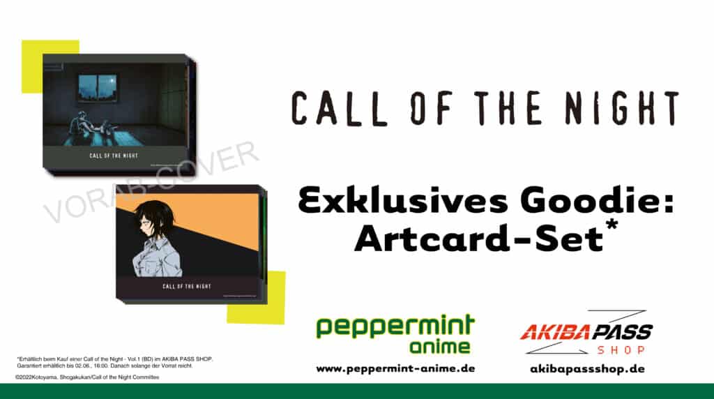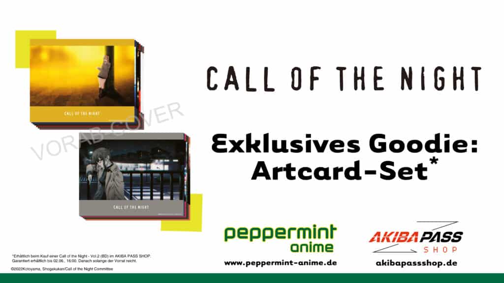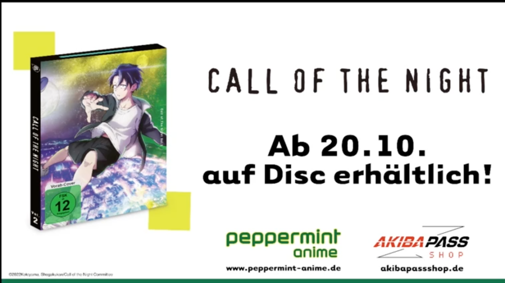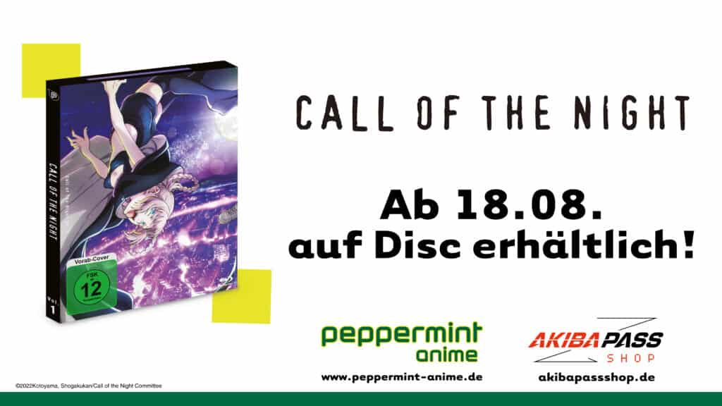 Heute endete die Early Bird-Phase der Anime-Serie „Call of the Night“ beim Publisher peppermint anime. Nun gab man im Rahmen eines Livestreams weitere Details zum Disc-Release bekannt.