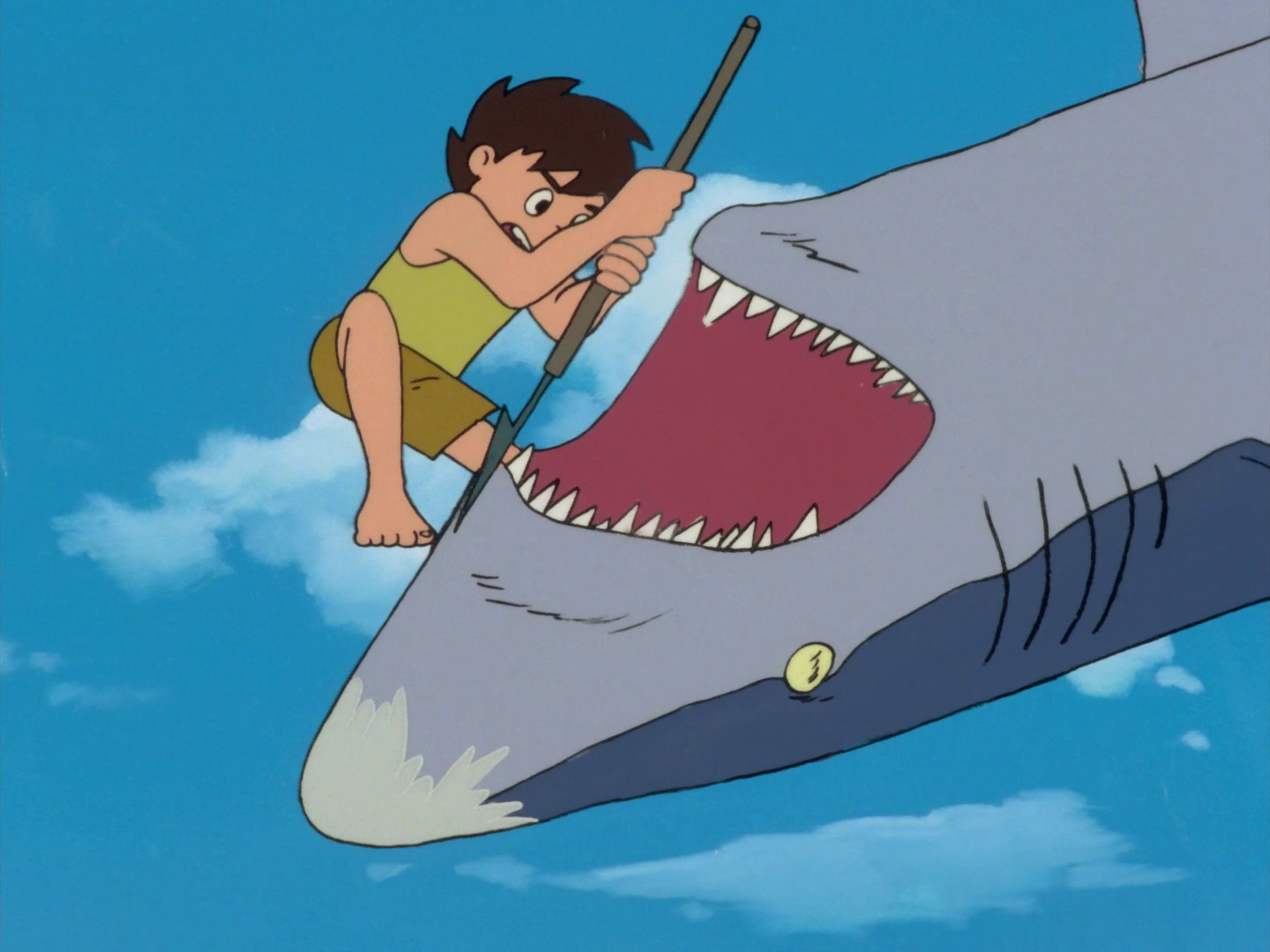 Bewaffnet mit einem einzigen Speer taucht Conan tief ins Blaue, um den Hai zu erledigen. Weißnase lässt nicht lange auf sich warten und ein Katz-und-Maus-Spiel beginnt tief unter der Oberfläche. Conan lockt den Hai in eine Falle und kann ihn vorübergehend außer Gefecht setzen. Doch Weißnase erholt sich schneller als erwartet. Schließlich gelingt es Conan, seinen gefährlichen Gegner zu besiegen, sodass die Fische im Gehege nun sicher sein sollten. Doch etwas ist seltsam. An der Küste fliegen zahlreiche Möwen um einen bestimmten Ort herum. Neugierig nähert sich Conan der Stelle und entdeckt… ein bewusstlose Person?