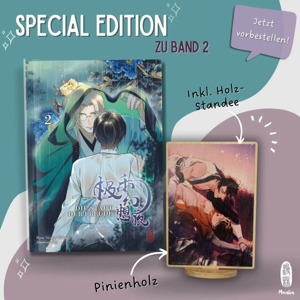 Der Verlag kündigt an, dass Band 2 eine Special Edition erhalten wird, die ab sofort im hauseigenen Webshop vom Manlin Verlag vorbestellt werden kann. Die Special Edition kommt mit einem Holz-Standee aus Pinienholz daher, was eine großartige Ergänzung für Fans der Reihe darstellt. Band 2 soll im November 2023 veröffentlicht werden.