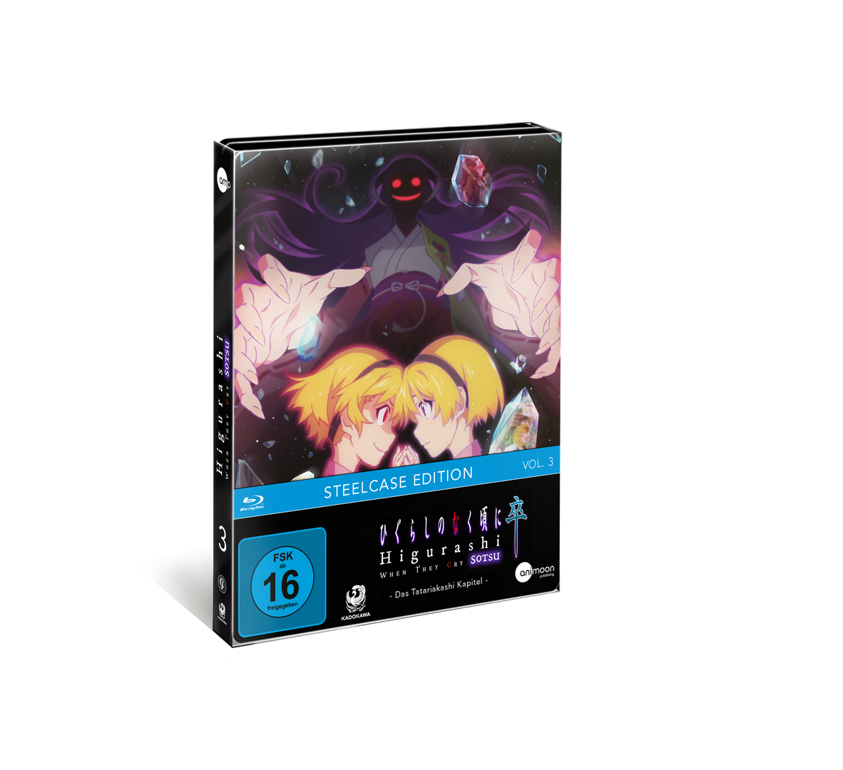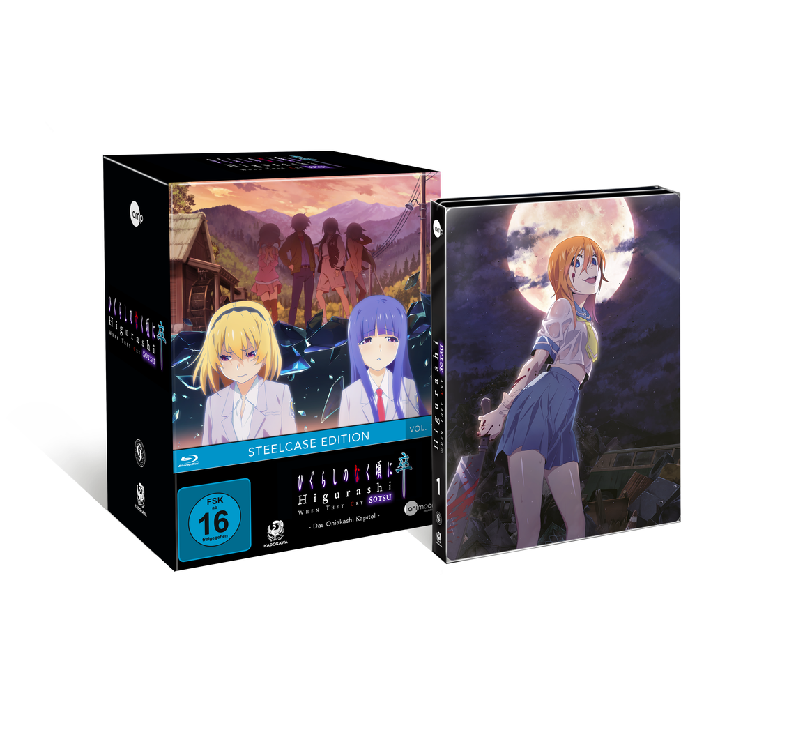 Los geht es mit der Veröffentlichung bereits jetzt im September 2023, denn am 29. September 2023 erscheint das erste Volume der Serie inklusive eines Sammelschubers auf DVD und Blu-Ray. Die Folgevolumes werden dann im monatlichen Abstand erscheinen, so dass der Release mit dem vierten Volume am 22. Dezember 2023 abgeschlossen werden soll. Das Ganze erscheint dabei wieder in einer limitierten Steelcase-Edition, die man bereits von den vorherigen Staffeln und Adaptionen von „Higurashi“ kennt.
