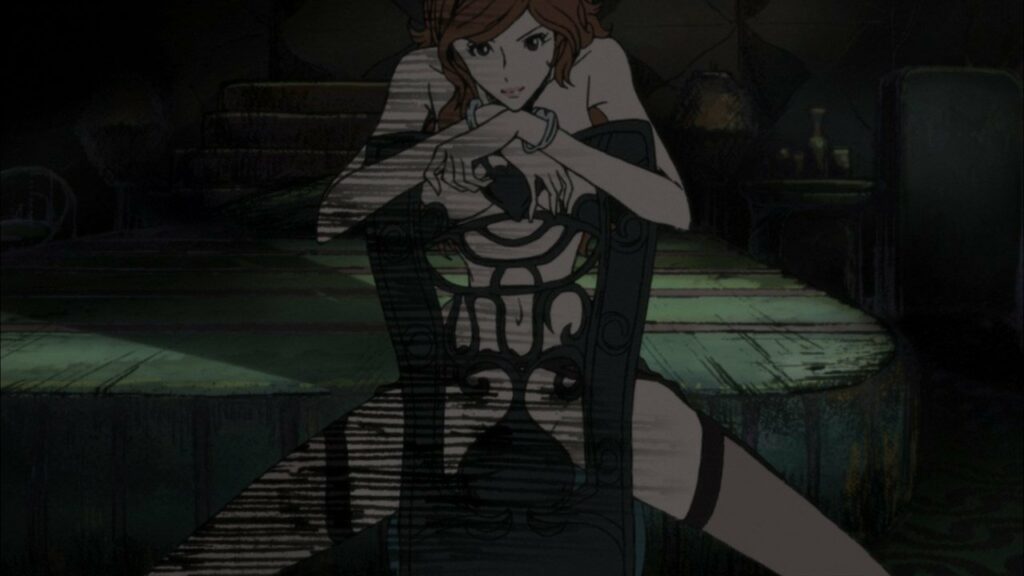 Wie schon erwähnt ist der Animations-Stil dieses Anime besonders. Der Anime bedient sich vieler Elemente, die ein stimmiges Bild ergeben. Erotik und Brutalität, Härte und Schönheit, Farbenfrohheit und Eleganz. „Lupin III.: The Woman called Fujiko Mine” besticht durch gegensätzliche Elemente, die trotzdem gemeinsam eingesetzt stimmig sind. Nackte Brüste sind keine Seltenheit. Allerdings wird die Nacktheit nicht zu häufig eingesetzt und gibt dem Anime etwas Würze. Alles in Allem muss man sagen ist der Anime ein visuelles Spektakel. Fast jedes Bild mag man sich einrahmen und an die Wand hängen, so schön ist der Anime gezeichnet.