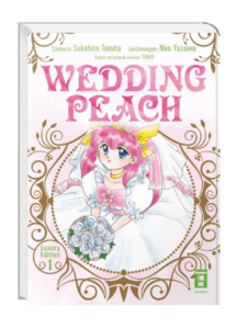 Die Magical Girls in Brautkleidern sind zurück! Nach 20 Jahren kommt die beliebte Kurzserie Wedding Peach als zweibändige Luxury Edition in Hardcover endlich wieder. Seit ihre Mutter verschwunden ist, lebt Momoko allein mit ihrem Vater. Das Einzige, was sie an ihre Mutter erinnert, ist ein alter Ring, den sie immer bei sich trägt. Eines Tages taucht plötzlich der Dämon Ame auf, der den Ring stehlen will, um ihn der Herrscherin der Finsternis zu bringen. Als ihr der Engel Limone zur Hilfe eilt, stellt sich heraus: Momoko ist Wedding Peach, der Engel der Liebe, der die Dämonen auf der Erde in die Flucht schlagen soll!