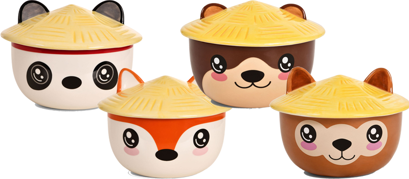 - 1x Waschbär Kawaii Schale mit Deckel für Anime Fans