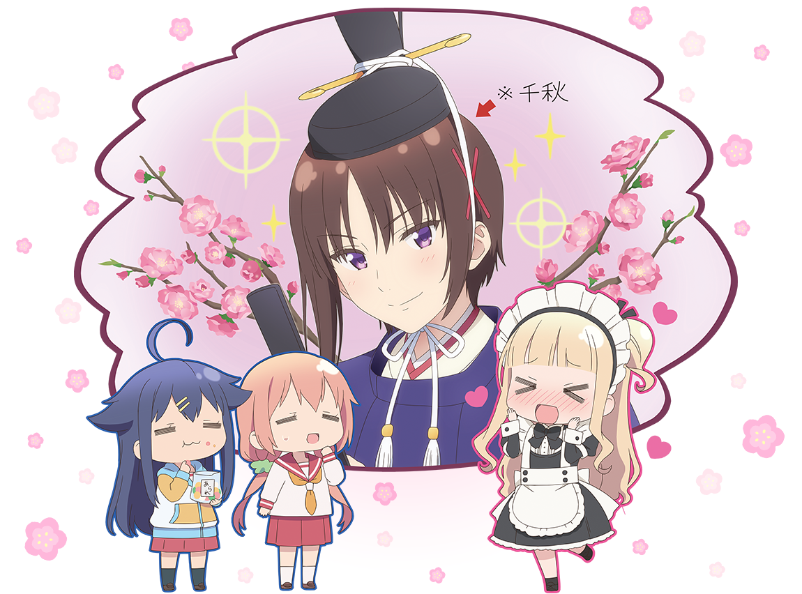 Charaktere von links nach rechts: Hinako Sakuragi (M・A・O), Kuina Natsugawa (Miyu Tomita), Mayuki Hiiragi (Yui Ogura), Chiaki Ogino (Hisako Toujou) und Yua Nakajima (Marika Kouno)