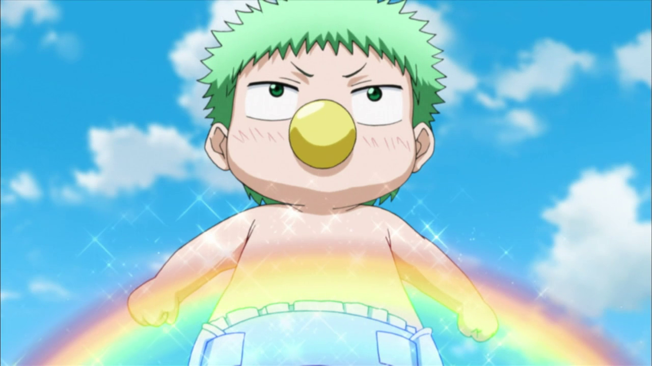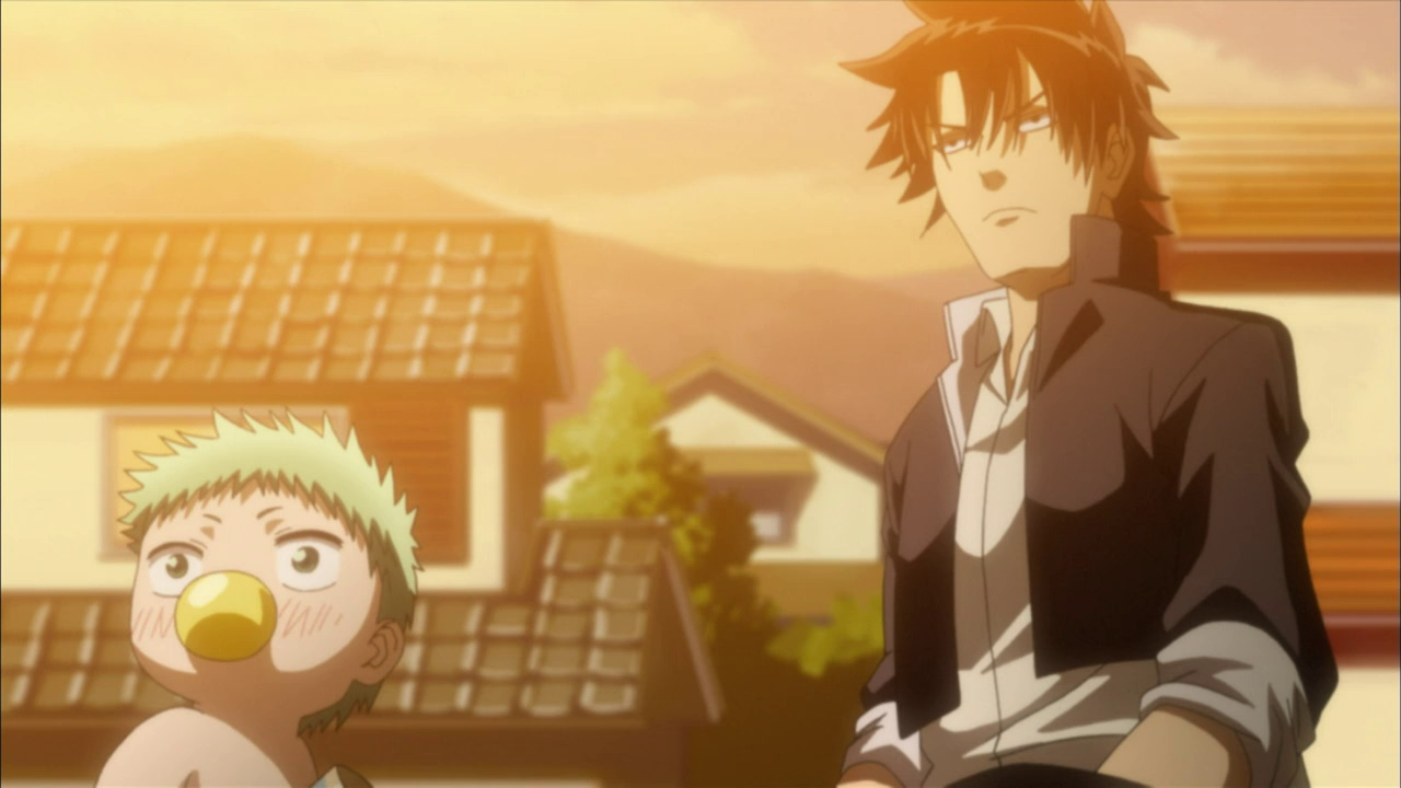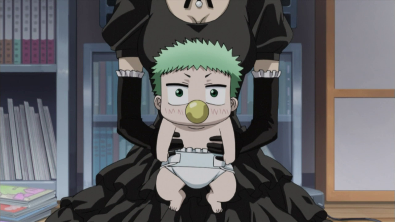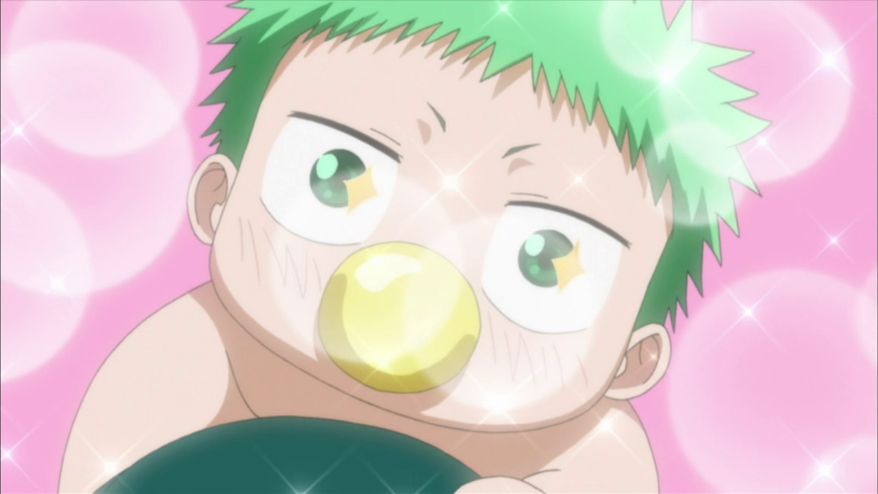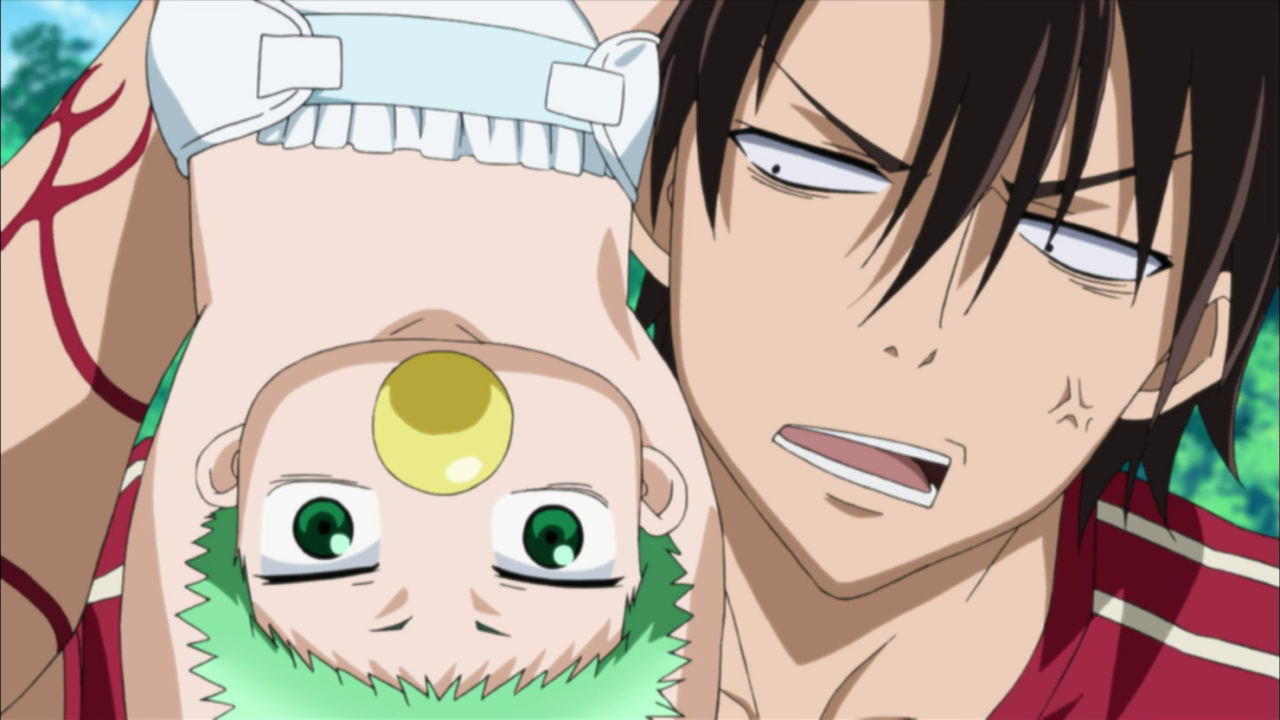 Die ungewöhnliche Begegnung mit dem Baby ereignete sich an einem normalen Tag, als Oga eine Gruppe Rowdies vermöbelte, die ihn angriffen, als er schlief. Beim Kopfüber-in-den-Fluss-Tränken des Anführers entdeckte er einen älteren Herrn im Wasser, den er rettete. Mit einem einzigen Schlag zerlegte er den Mann in zwei Hälften, und zum Vorschein kam das grünhaarige Baby. Die Geschichte klingt merkwürdig? Doch genau so soll es sich laut Oga zugetragen haben, der die Geschichte seinem Kumpel Furuichi erzählt. Doch wie bereits erwähnt, ist das Baby alles andere als gewöhnlich – jedes Mal, wenn es weint, gibt es Elektroschläge ab, die jeden in der Nähe schockieren.
