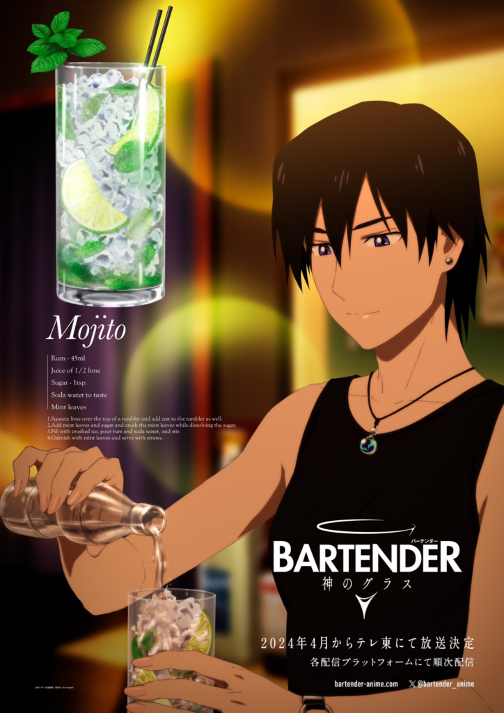 Zum kommenden Anime “Bartender Glass of God” wurde ein fünftes Visual veröffentlicht. Dieses Visual präsentiert den Charakter Yuri Kinjo mit dem Getränk Mojito.