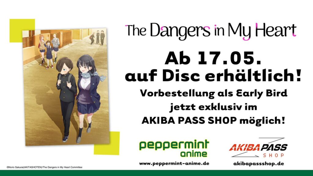 Bereits im vergangenen August kündigte peppermint anime an, dass man sich die Lizenz für einen Disc-Release der RomCom „The Dangers in My Heart“ sichern konnte. Nun geht es auch endlich in die Vorbestellungsphase.
