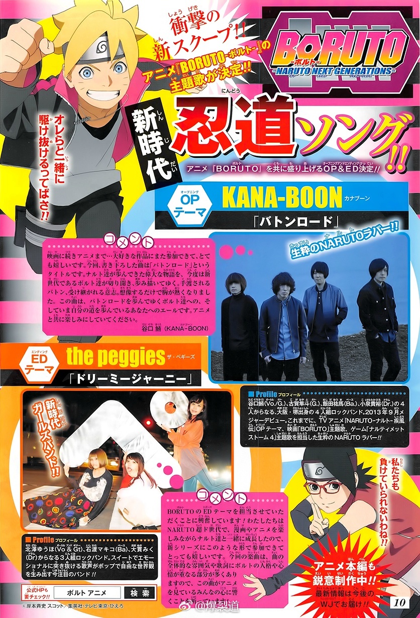 In der 15. Ausgabe des Weekly Shounen Jump Magazins wurde am Montag bekanntgegeben, wer das Opening und Ending zur Serie beisteuern wird: KANA-BOON performt das Opening mit dem Titel »Baton Road«, und The Peggies das Ending, welches den Titel »Dreamy Johnny« trägt.