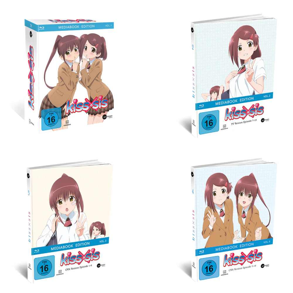 Der Anime “Kiss×sis” weißt gleich zwei Versionen auf. So existiert neben einer etwas weniger freizügigen TV-Serie aus dem Jahr 2010, die aus zwölf Episoden besteht, auch eine ebenfalls zwölfteilige OVA-Reihe, deren Episoden zwischen 2008 und 2015 in Japan veröffentlicht wurden und die etwas expliziter sind. AniMoon Publishing konnte sich sowohl die Rechte an der TV-Serie, als auch an der OVA-Reihe zu “Kiss×sis” sichern und wird alle Episoden aufgeteilt auf insgesamt vier Volumes in den Handel bringen. Los geht es mit dem ersten Volume, das einen Sammelschuber und ein exklusives Extra mit dabei hat, voraussichtlich bereits Anfang Mai 2024. Darin sind die ersten sechs Episoden der TV-Version enthalten. Die weiteren Volumes mit den weiteren Episoden des TV-Anime und der OVA-Reihe folgen dann voraussichtlich ebenfalls im Mai, im Juni und im Juli 2024.