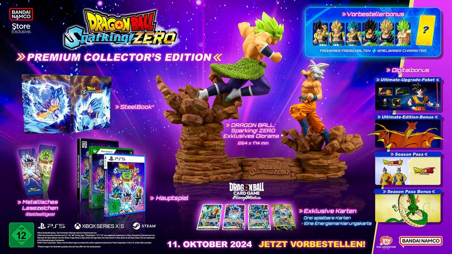 Es ist offiziell: Noch in diesem Jahr könnt ihr in die Rolle eures Lieblings-Z-Kriegers schlüpfen. „Dragon Ball: Sparking! ZERO“ wird am 11. Oktober 2024 für die PlayStation 5, Xbox Series und PC via Steam erscheinen. Fans haben dabei die Auswahl zwischen verschiedenen Editionen, die wie folgt aussehen: