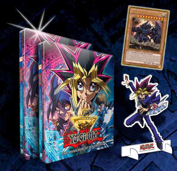 Ebenfalls exklusiv bei Anime Planet wird eine Metal Case Edition des Kinofilms „Yu-Gi-Oh! THE DARK SIDE OF DIMENSIONS“ angeboten. Diese ist auf insgesamt 4000 Exemplare limitiert (2500 Blu-Rays/1500 DVDs) und enthält zusätzliche Extras. Dabei handelt es sich um einen Mini-Aufsteller von Yugi sowie die limitierte Karte „Obelisk der Peiniger“ in GOLD RARE. Wer also im Kino keine Karte ergattern konnte, der hat nun noch einmal die Möglichkeit sich Obelisk in einer anderen Seltenheitsstufe zu sichern. Natürlich wird es von „Yu-Gi-Oh! THE DARK SIDE OF DIMENSIONS“ parallel auch eine Standard-Version geben, die im normalen Handel erscheint.