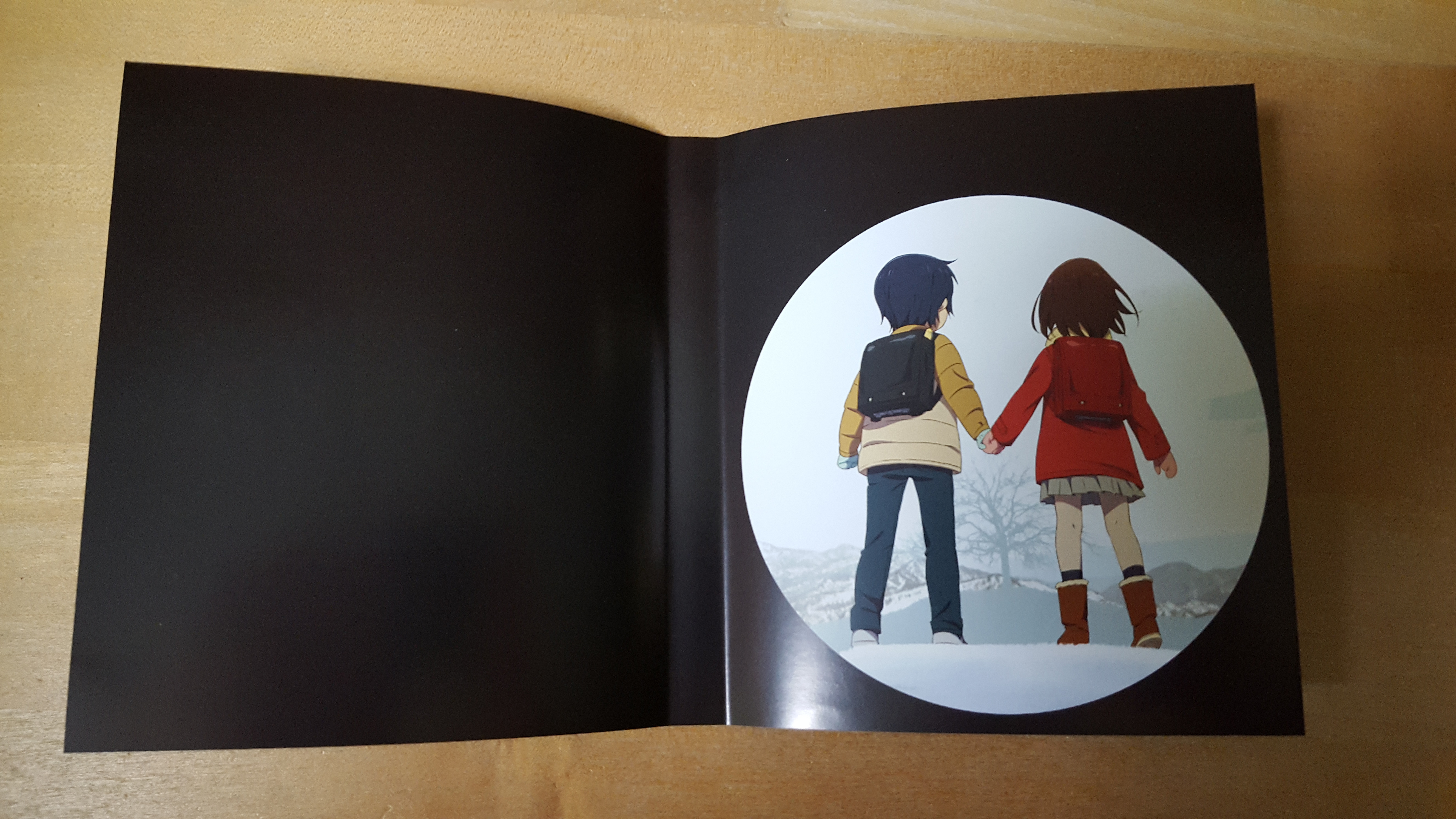 Im Schuber selbst befindet sich erneut eine Standard Blu-Ray-Hülle. Um dem doch recht dunklen Cover von Volume 2 gerecht zu werden, hat man sich hier für eine schwarze Hülle und damit gegen das Standard-Blau entschieden. Ein FSK-Logo, welches nicht ablösbar ist, prangt allerdings auch hier wieder auf dem Cover. Auf der Innenseite des selbigen bekommt der Käufer zwar wieder eine weitere hübsche Illustration des jungen Satoru und von Kayo geliefert, um diese zu betrachten, muss die Hülle jedoch in helles Licht gehalten oder das Cover aus der Hülle entfernt werden. Dies liegt einfach darin begründet, dass die schwarze Hülle deutlich weniger durchsichtig erscheint, als ihr blaues Pendant.