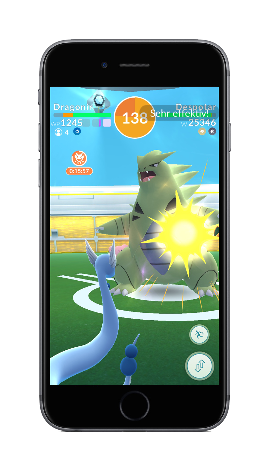 •  Die Möglichkeit, den Raid-Boss zu fangen – nur dann, wenn dieser innerhalb des gesetzten Zeitlimits von 5 Minuten besiegt wird