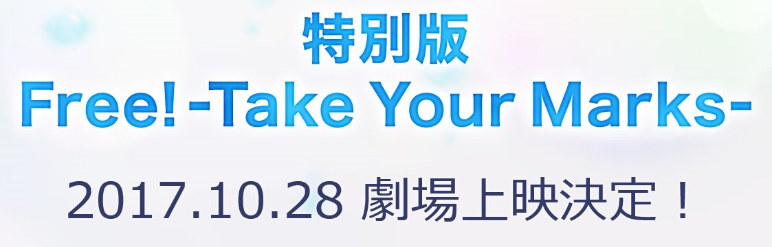 Der dritte Film, der dieses Jahr zum Free!-Franchise erscheinen wird und zuerst nur für Herbst 2017 angekündigt war, hat ein Startdatum erhalten: demzufolge startet Free! -Take Your Marks- am 28. Oktober in den japanischen Kinos.