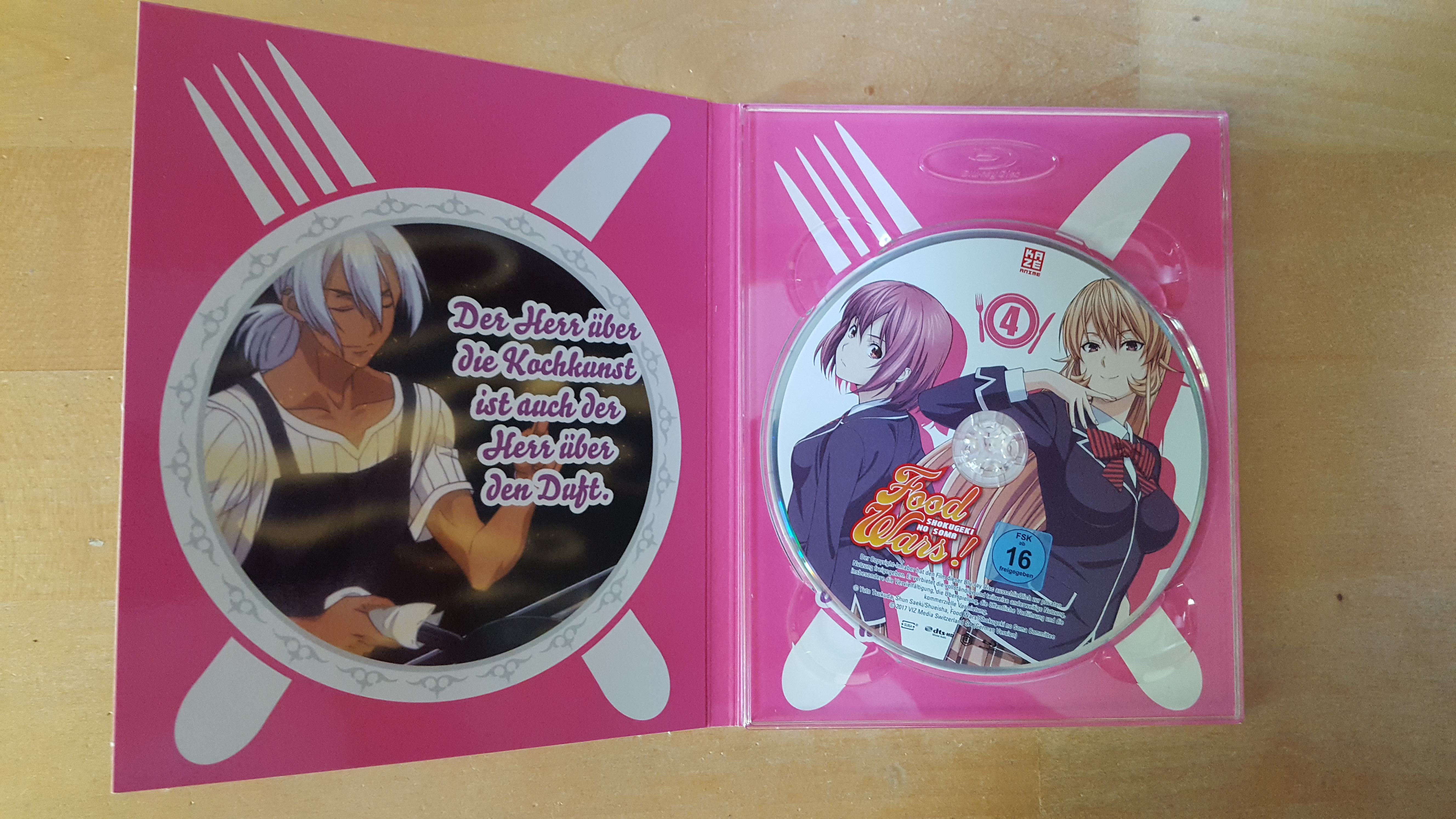 Nach dem Aufklappen findet ihr im Inneren des Digipacks zunächst einmal die Disc mit den finalen Episoden 19 bis 24 des Anime vor. Erneut verzichtet man auf ausufernde digitale Extras und liefert den Fans wieder die Credits sowie einige Trailer. Wie schon bei den vorherigen Volumes liegt Volume 4 aber auch wieder ein schickes Booklet bei. Dieses enthält unter anderem Episodenbeschreibungen sowie Charakterdesigns. Auch ein Werbeflyer für den zugehörigen Manga liegt diesmal wieder mit in der Packung.