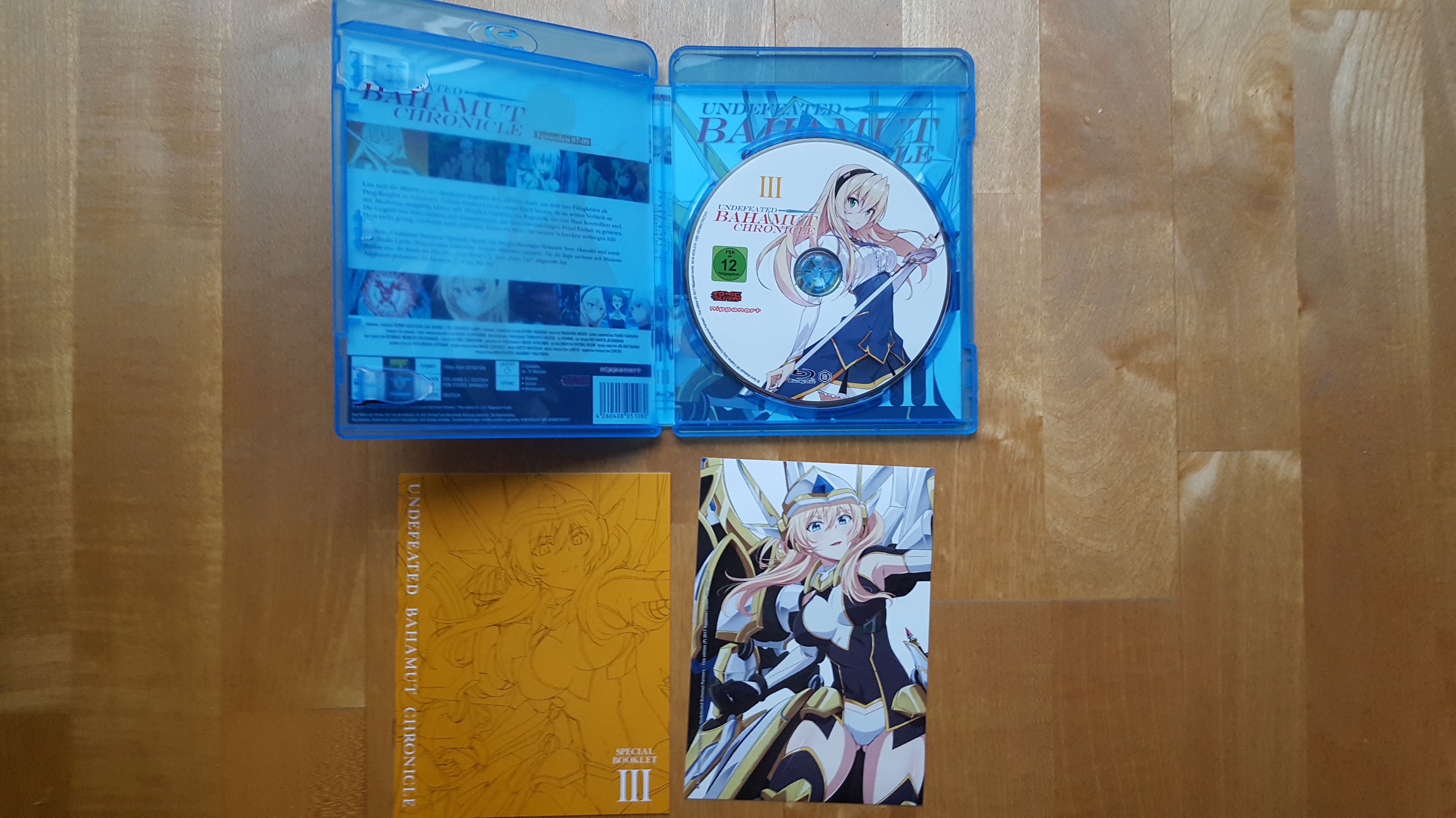 Die physische Umsetzung ist wie gewohnt kein wertungsrelevanter Punkt unseres Reviews, dient euch als potenziellen Käufern jedoch als Information, auf was ihr euch einstellen könnt. Die nachfolgenden Informationen und Bilder beziehen sich auf die Blu-Ray-Version des dritten Volumes von Undefeated Bahamut Chronicle.